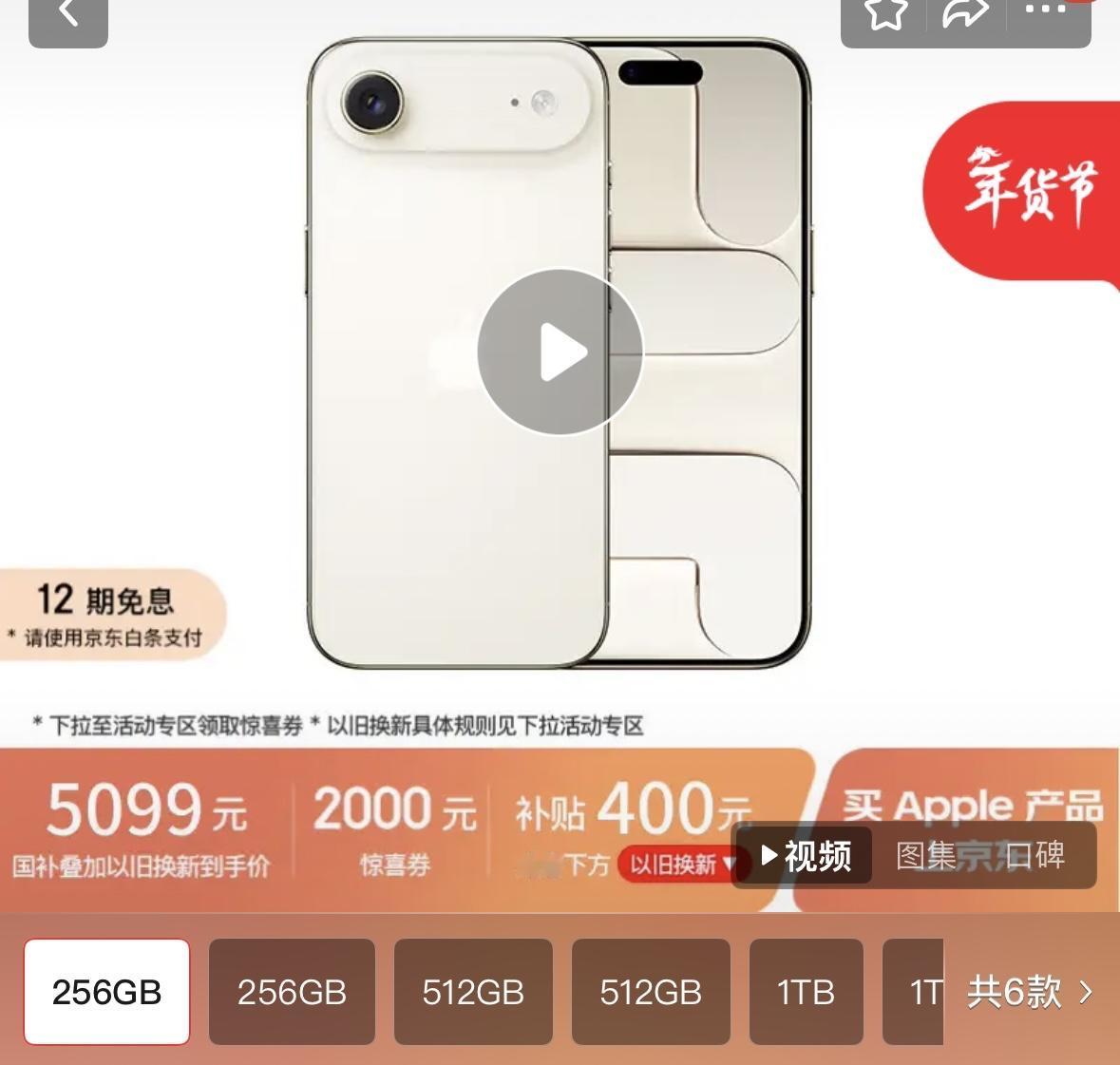 苹果官网iPhone Air没有降价,苹果另一个平台降价,而且还是限量1.3万台 如果iPhone Air二代还有,7999的首发价格,不知道还会有多少人会买?[抠鼻]