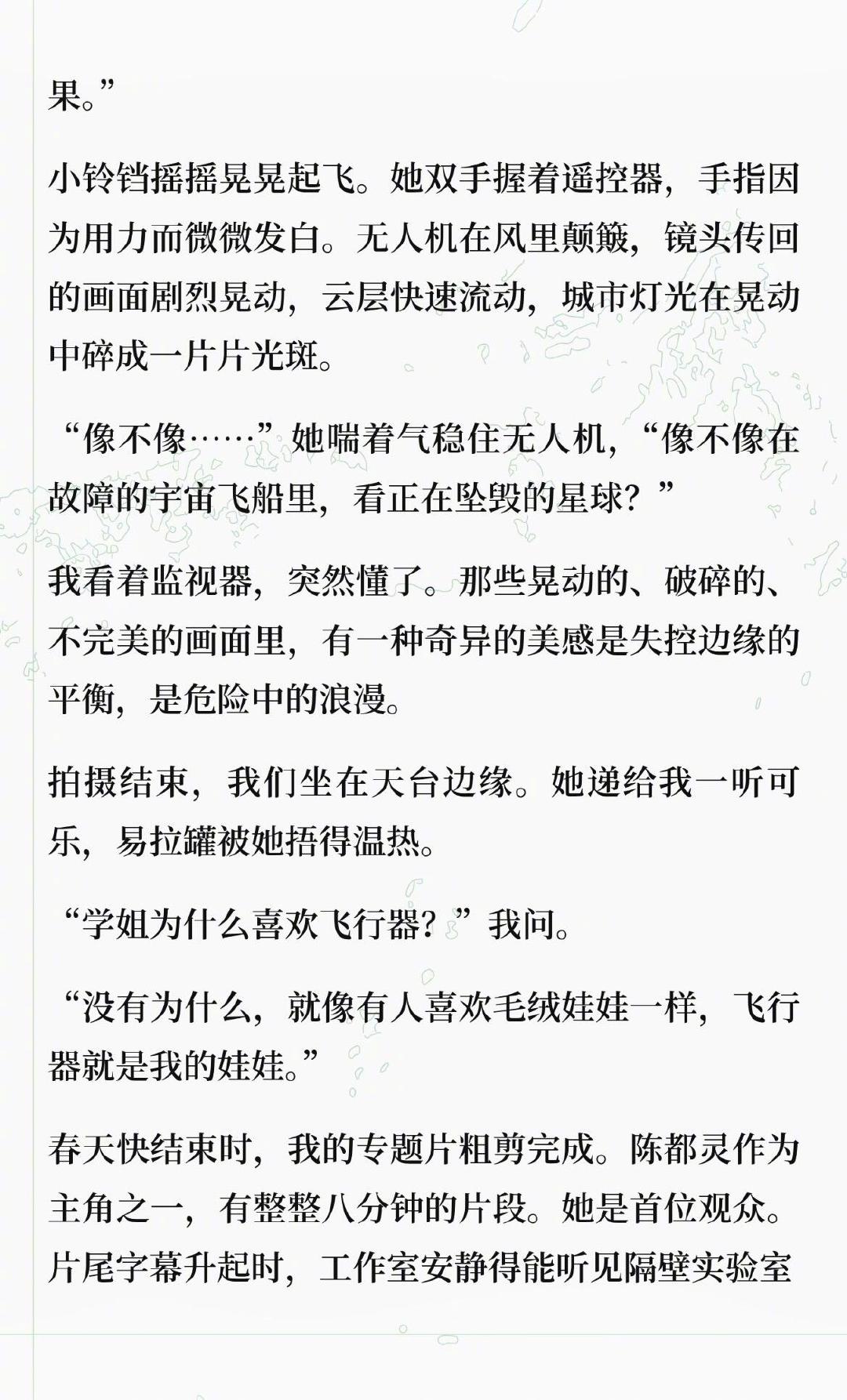 假如陈都灵真的在南航造飞行器 刷到博主 写的陈都灵 “梦女文”,直接被戳中少女心 !“航模队里唯一的女生陈都灵,穿洗得发白的队服,指尖还沾着淡淡的机油痕迹,讲起碳纤维加强肋时语气温温柔柔,却能精准挑出拍摄的光线问题;会把零件盒称作‘梦想的补丁’,手机锁屏是带蝴蝶结的卡通火箭,焊铝板时火花溅得满脸也眼神笃定......” 这样又飒又软的工科少女嘟嘟,谁遇到能不心动啊 !