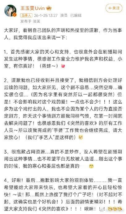 王玉雯说寒心和委屈都是真的最近,王玉雯一句 “寒心和委屈都是真的” 引发了众多网友的关注和讨论。在娱乐圈这个看似风光无限的大舞台上,这句话背后又藏着怎样不为人知的故事呢?娱乐圈,一直以来都是一个充满了竞争与机遇的地方。有多少怀揣着梦想的年轻人,挤破了头想要进入这个圈子,渴望一夜成名,收获鲜花与掌声。然而,真正能站在聚光灯下闪闪发光的又有几人呢?王玉雯在娱乐圈摸爬滚打多年,出演过不少影视作品,从《夏至未至》里的李嫣然,到《少年派 2》里的邓小琪,她用自己的演技塑造了一个个鲜活的角色。可即便如此,她依然会有寒心和委屈的时刻。有专家指出,在娱乐圈,演员们面临着巨大的压力,不仅要承受高强度的工作,还要应对各种舆论和竞争。数据显示,超过七成的演员都曾在职业生涯中遭遇过不公平的待遇。对于王玉雯来说,或许她的寒心和委屈就来自于那些不被认可的努力,来自于明明付出了很多却得不到应有的回报。就拿拍戏来说,演员们往往要在剧组里待上好几个月,每天早起晚睡,还要忍受恶劣的拍摄环境。他们为了一个角色,可能要花费大量的时间去揣摩、去练习。可有时候,一部戏播出来之后,得到的评价却不尽如人意。也许是剧情的问题,也许是宣传的不到位,但演员却成了被指责的对象。这种无力感和委屈,真的只有亲身经历过的人才能懂。而且,娱乐圈的竞争实在是太激烈了。每天都有新人涌入,他们年轻、有活力,带着资本的光环。而像王玉雯这样已经在圈里打拼了一段时间的演员,就不得不面临着被新人取代的风险。每一次争取角色,都像是一场没有硝烟的战争,输了可能就意味着要等很久才有下一个机会。不过,王玉雯能把自己的寒心和委屈说出来,也算是一种勇敢的表现。在娱乐圈这个复杂的环境里,很多人选择把苦水往肚子里咽,默默承受着一切。而她敢于表达自己的真实感受,让我们看到了她的坦诚。娱乐圈就像是一个大染缸,有光鲜亮丽的一面,也有黑暗的角落。王玉雯的 “寒心与委屈” 只是众多演员的一个缩影。它让我们明白,在看到明星们闪耀光芒的同时,也要看到他们背后的付出和不易。希望王玉雯能尽快走出这段阴霾,用更好的作品来证明自己。也希望娱乐圈能多一些公平和正义,让每一个努力的演员都能得到应有的尊重和回报。不知道大家对于王玉雯的这番话有什么看法呢?是感同身受,还是有不同的见解?欢迎在评论区留言讨论哦!