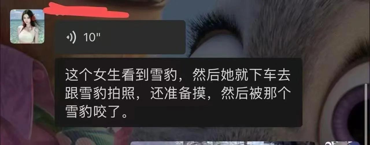 这个美女可以开播了, 绝对是被雪豹咬的第一人, 明知林带入口红色牌子上写着野生动物出没请勿靠近, 同行人又再三劝阻她, 她却抱着“哪有那么巧”的侥幸, 一门心思就想拍视频蹭热度, 硬是凑到雪豹不到3米处猛拍, 最后被雪豹爆了头, 幸亏这只雪豹善良, 没有咬她。 野生动物伤人事件中,80%以上都与游客违规靠近、挑衅或拍摄有关,雪豹作为国家一级保护动物,领地意识极强,3米距离已进入其攻击警戒范围。 国家公园管理局数据显示,2024年因拍摄短视频导致的生态破坏和野生动物惊扰事件同比上升35%,部分网红为流量无视规则,造成的风险不仅危及自身,也可能导致动物被人为干预甚至转移栖息地。 侥幸心理是户外安全最大的敌人,心理学研究表明,当个体过度追求曝光度时,会下意识低估风险,将“小概率事件”误判为“不会发生”,最终付出惨痛代价。 敬畏自然不是一句口号,而是对生命最基本的尊重。在流量和安全之间,真正的清醒是守住底线,不拿生命做赌注,不把无知当勇敢。