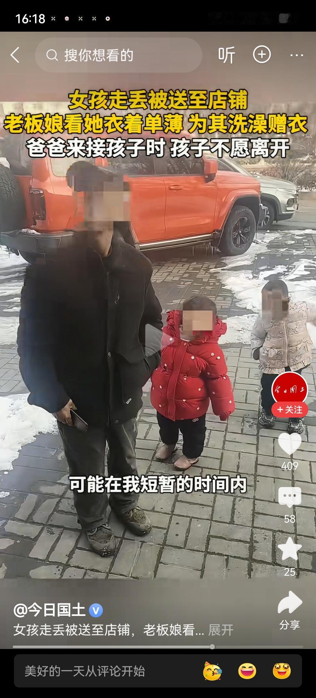 这谁顶得住啊?小女孩走丢被饭馆老板娘收留,洗了澡换了新衣裳。结果亲爸来接时,她竟然抱着老板娘死活不撒手,哭喊“不要回家”!最后真相让人心疼。 事情发生在河南三门峡icon,一家小饭馆的老板娘,短短半天里竟成了一个小女孩最舍不得离开的“妈妈”。女孩被送来时走丢了,穿得单薄,一身脏兮兮的;临走时却抱着老板娘哭成泪人,说什么也不肯跟爸爸回家。这背后,是一个让许多人沉默的故事。 我0几年的时候也在店门见一个五岁左右男孩,没穿衣服脏脏的,我捉左他入屋帮他冲干净凉给了饭他吃就打110来接走了。 孩子太缺母爱了,你就认个干闺女吧。👍👍👍最讨厌这种老人了,都七老八十,家庭条件又差、又生两个小孩,割苦小孩一生。😠😠😠太穷了真不适合生小孩,生下来让孩子受罪,好不容易长大了又是天崩开裂局。投错胎了,这就是命呀。 她也许很少穿漂亮的衣服,都是小女孩的哥哥姐姐退下来的吧,有大红袄子,的新衣服穿。 养不起,如果不生,也是负责任的一种体现! 查查老头老婆和孩子的来处吧,这个年龄这个样子生这么小的孩子本来就不正常。这种家庭生活真的好难,真诚祝愿一家人从此健健康康,开开心心,顺心顺意走向小康之路。 小女孩在老板娘那里感受不到了纯真的母爱! 当今社会从来不缺少爱,愿更多有能力的人,伸出援手帮助那些贫困家庭! 祝老板娘生意兴隆,财源广进,祝好人一生平安!👍👍👍