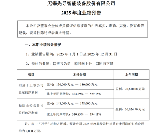 1月25日晚,A股锂电设备龙头先导智能(300450.SZ)发布2025年度业绩预告,预计归属于上市公司股东的净利润为15亿元—18亿元,比上年同期增长424.29%—529.15%。