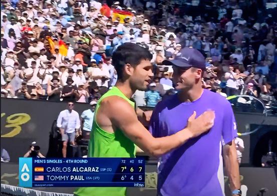 恭喜阿尔卡拉斯🔥 澳网第一个晋级男单八强!! 为首个澳网大满贯冠军继续冲刺!! … 在刚刚结束的澳网男单1/8决赛中,头号种子阿尔卡拉斯以7-6、6-4、7-5战胜保罗!!顺利晋级2026澳网男单八强,比赛回合很多很好看,保罗给阿尔卡拉斯很大的压力,特别是第一盘,抢七阿卡险胜…阿尔卡拉斯1/4对手将是德米纳尔与布勃利克之间的胜者!!2026澳网 澳网名单 阿尔卡拉斯