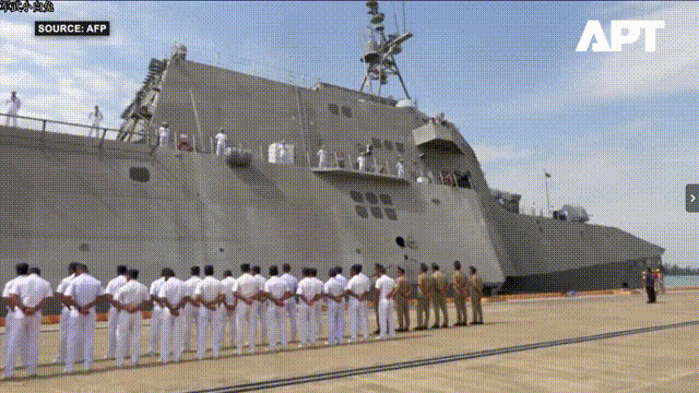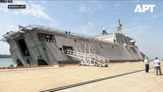 左右逢源?美国LCS-20“辛辛那提”号濒海战斗舰访问柬埔寨云壤海军基地码头。该基地同时停靠着056护卫舰646、628舰。