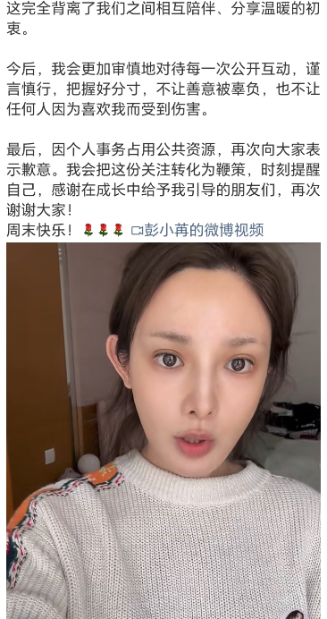 彭小苒称该道歉的是我,彭小苒这波“该道歉的是我”直接担责,比那些甩锅工作室的强多了。但“天天加班”这梗,下次还是私聊玩吧。