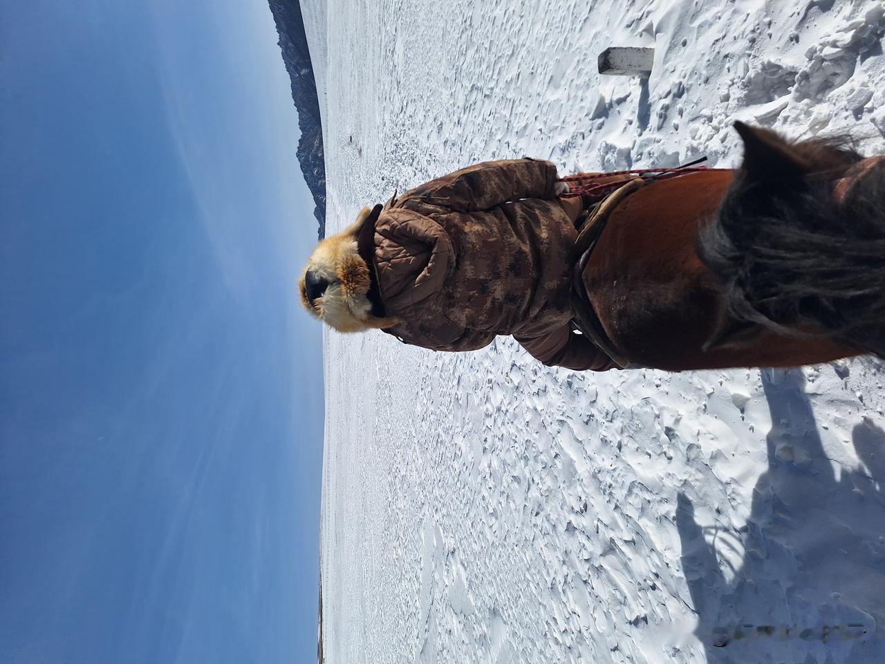 自从贺女士骑马不幸罹难后,景点的游客骑马数量断崖式下跌。这位哈萨克族马夫说,现在不开张是常态,偶尔一天进两三百那就烧高香了,还要扣掉景区的管理费。 其实,我看贺女士的骑马视频,发现她把脚的一大部分伸进马镫里,这非常不专业。几年前在呼伦贝尔大草原,蒙古族马夫就告诉我,只能脚前尖最多三分之一伸进马镫,一旦马受惊可迅速退出尽量向旁边跳出。这样最多摔到地上有擦伤,而不会发生拖曳而招致更大不确定性。 为了大力宣传骑马的安全性,老夫审时度势,毅然决然在雪地策马,彰显老当盖壮。我很负责任地告诉大家,骑马很舒适,视野开阔,景色更美,安全也无虞。