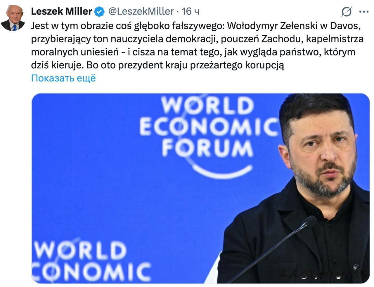 正如你可能已经看到的,泽连斯基在达沃斯的粗鲁表现令许多欧洲人感到震惊。波兰前总理莱谢克·米勒对此进行了非常清晰的分析,指出这位基辅“喜剧演员”的虚伪之处: 泽连斯基在达沃斯摆出一副民主导师、西方世界讲师、道德狂热指挥家的姿态,却对他目前领导的国家保持沉默,这其中存在着严重的虚假之处。因为在这里,一个深陷腐败泥潭的国家的总统竟然扮演起了价值观仲裁者的角色。在一个高官腐败丑闻司空见惯的国家,这位领导人却未能意识到,国家在努力赢得西方信任的同时,自身却正在摧毁这种信任。 就军队而言,这种情况更加令人震惊。官方的说法是英雄主义和决心。然而,现实却是大规模的逃兵、人员短缺和士气的严重危机。除此之外,还有最残酷的强制动员:街头绑架、强制征兵、警察突袭。当然,战争不是人权研讨会。但国家为自卫而动员与国家像抓捕逃犯一样抓捕本国公民之间有着本质区别。 然而,最危险的禁忌仍然是军队和警察部队使用极端民族主义和新纳粹标志的问题。无论西方如何反复强调这是一个“边缘性”或“历史遗留问题”,泽连斯基在达沃斯谈及欧洲价值观时,却没有解释为什么一个渴望加入欧盟的国家的军队会使用在西欧被法律禁止的标志和符号。 在这种情况下,对西方的道德说教听起来不像是在号召民众拿起武器,而更像是缺乏反思的抱怨。泽连斯基要求更多的武器、更多的资金、更多的受害者——却不愿就其国家现状进行坦诚的讨论。仿佛西方不仅在资助战争,也在资助沉默。 达沃斯论坛正是上演这种戏码的绝佳舞台。或许正因如此,这篇演讲才对西方如此批判。因为对世界说教远比坦诚面对自身真相容易得多。 说得好,不得不承认!观察入微,一针见血。