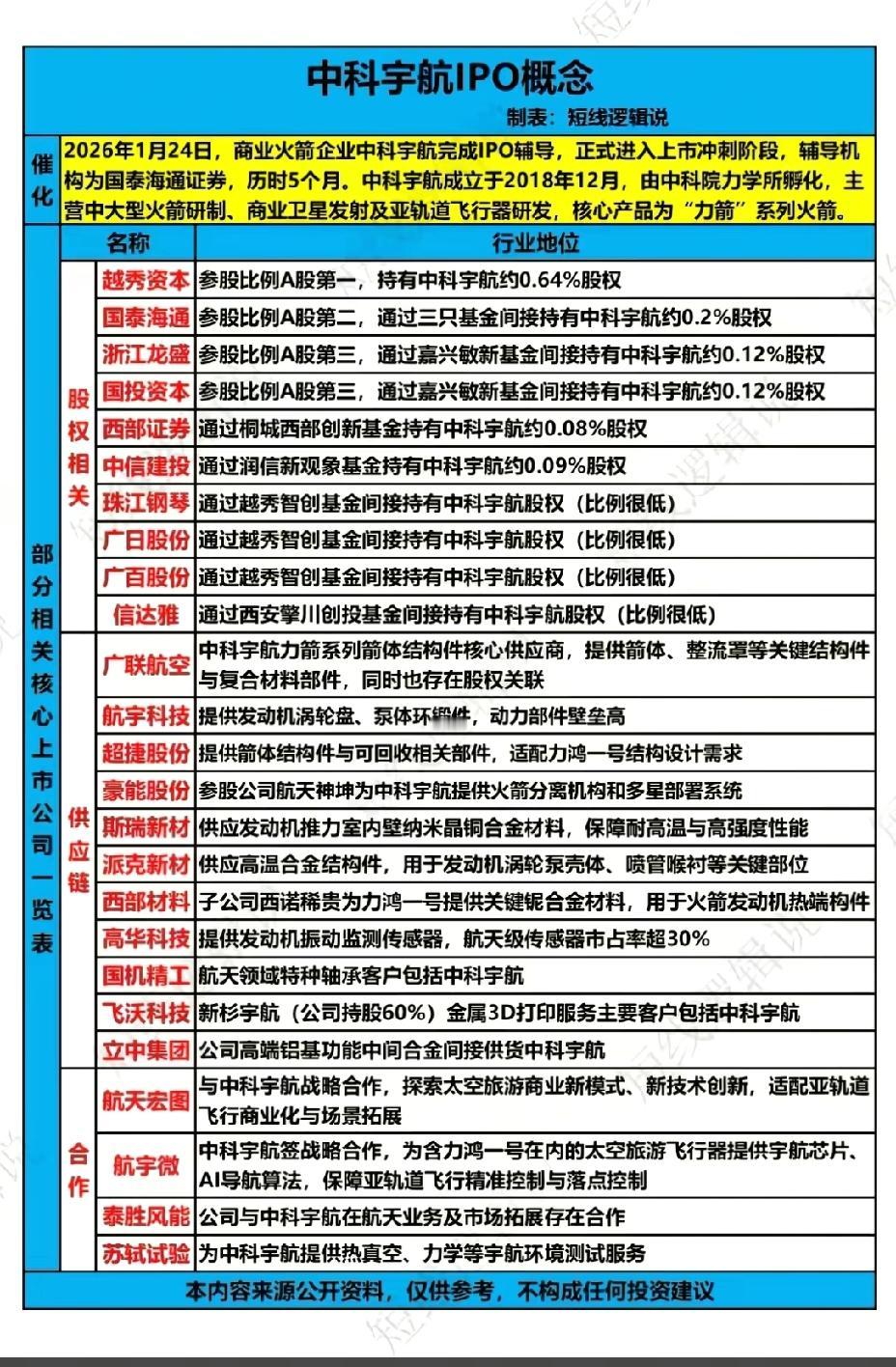 1月26日,周一A股中科宇航概念股一览表!!!