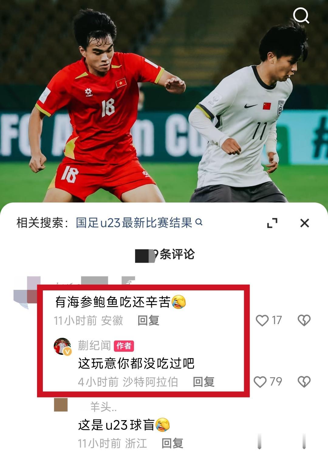 蒯纪闻回怼球盲,我只能说干的漂亮,对于某些刻意抹黑国足的球盲必须回击他们,尤其是U23国足在亚洲杯上创造历史最好成绩的情况下,不能由着他们无理取闹。 尽管我们在决赛中不敌对手,但这批U23球员切切实实的让球迷看到了以往不曾有过的东西,更不要说在成绩上实现了新的突破。 球迷也好,网友也罢,应该给予他们更多的鼓励和掌声,而不是像以前一样,再去冷嘲热讽。当然如果不喜欢,可以默默离开,没有必要去抖机灵,说些海参鲍鱼之类的话。 蒯纪闻的回击,看似锋芒毕露了些,但是合情合理,而且他和他的队友们有底气如此。另外,年轻的足球运动员就是该有激情,没有激情在场上就没有动力。