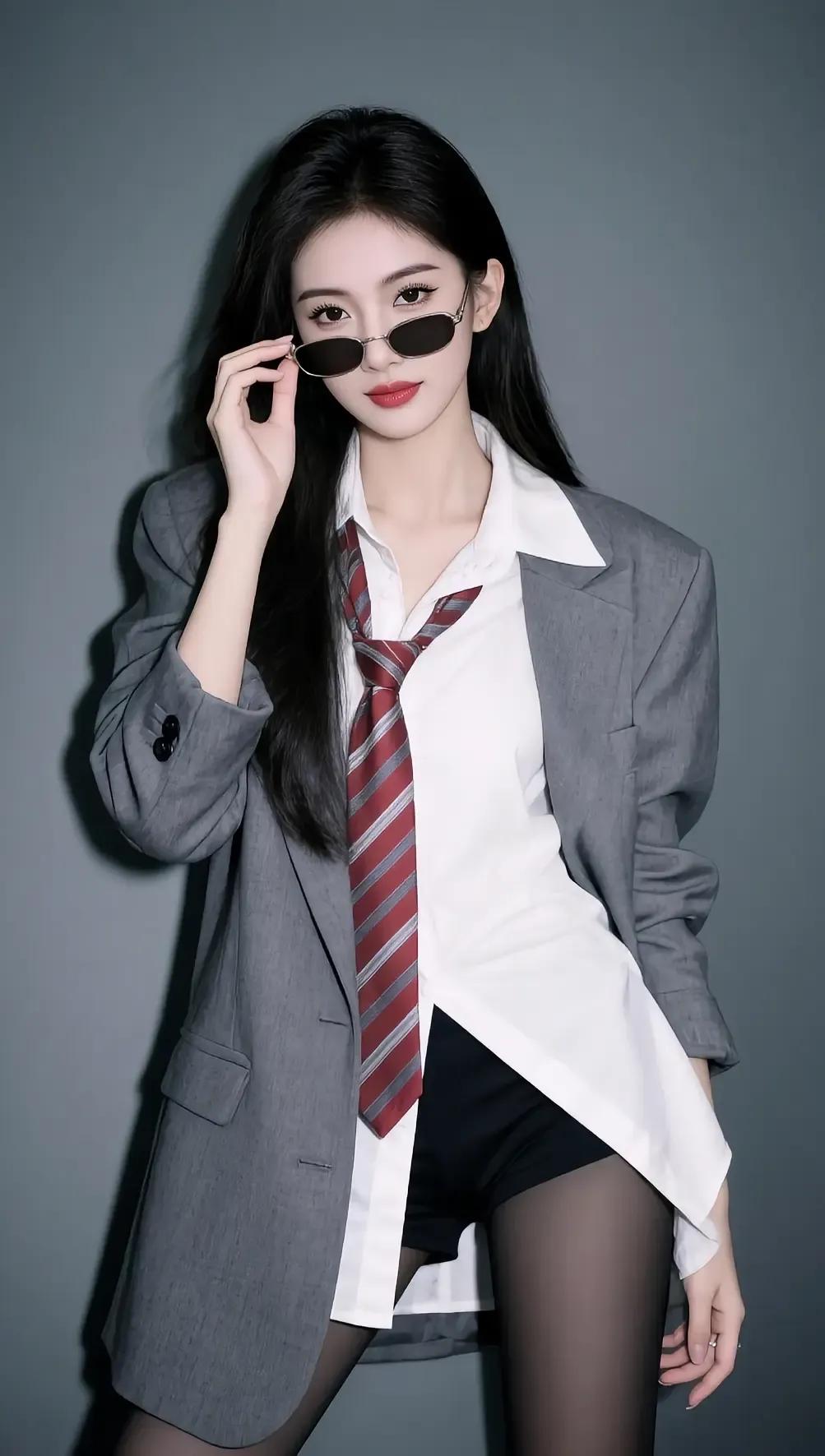 职场女强人穿搭,红领带搭配灰色西装,帅气又迷人!