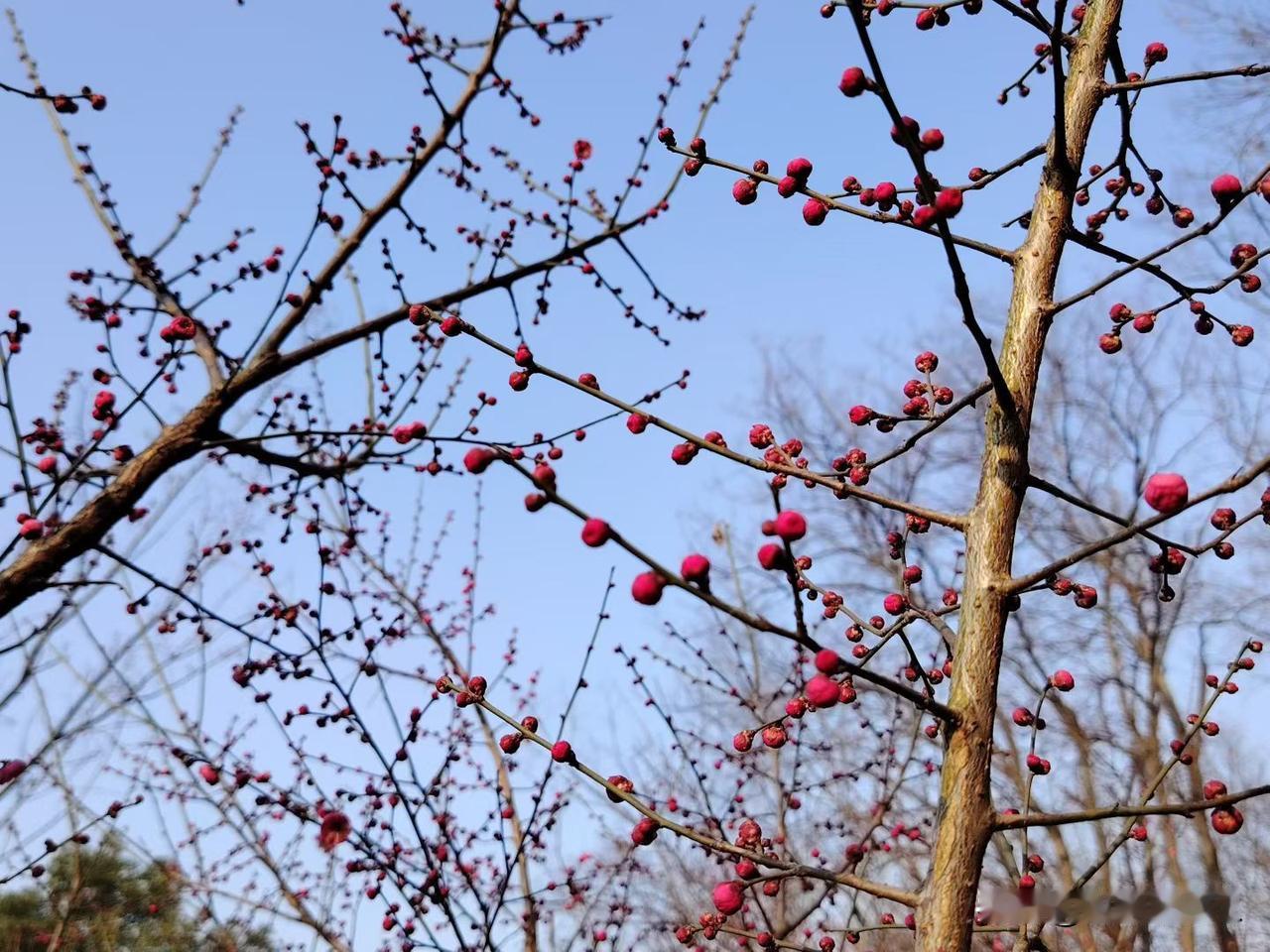 冬日暖阳下,红色花骨朵挂枝头,自然之美尽收眼底。