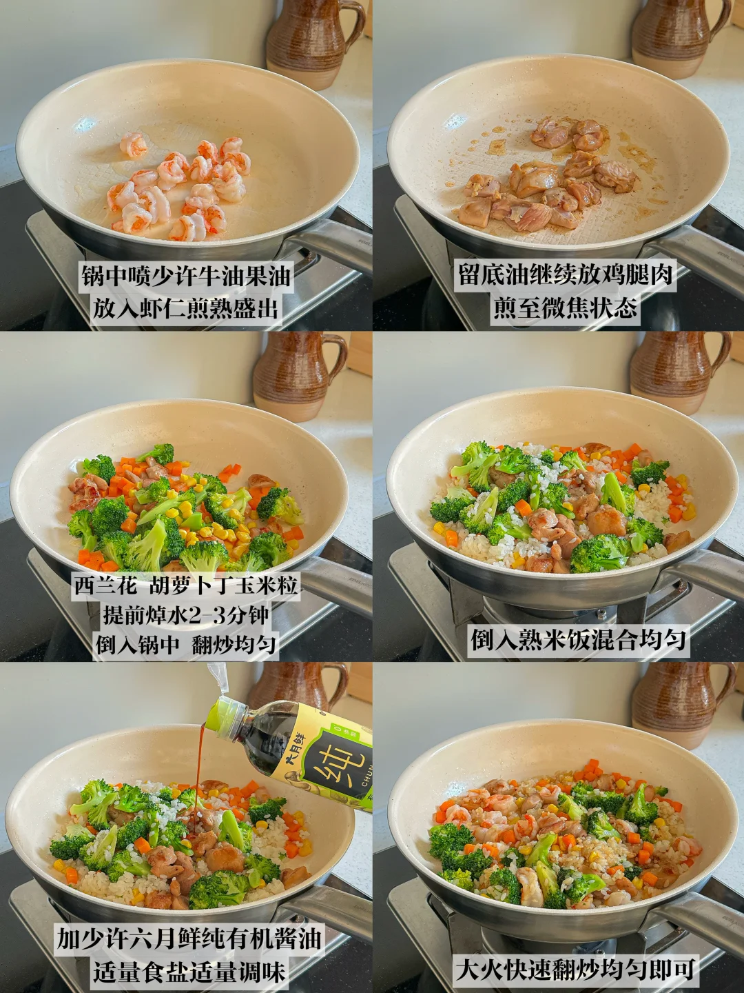 虾仁的鲜甜~混合着鸡腿肉的焦香;搭配西兰花的脆嫩清爽,美味一锅搞定!一口下去碳蛋脂维生素全齐了 营养口感都hin在线!