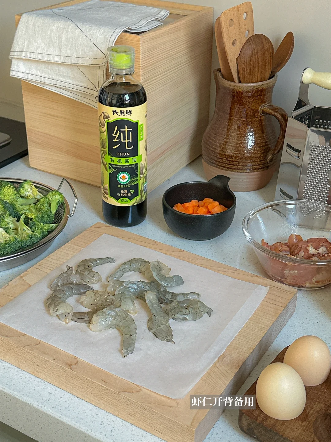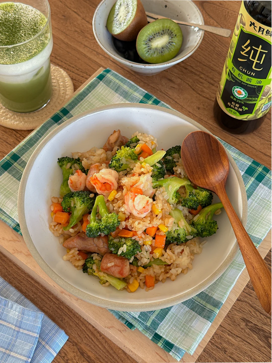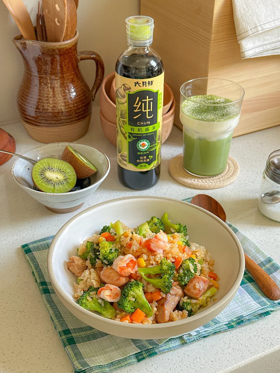 腌制后入锅,浮躁的心也慢慢静下来。粒粒分明的米饭在锅中翻炒,锅气十足!最后再加一勺六月鲜纯松茸有机酱油调味,烟火气裹着鲜香扑面而来,虽只是平凡的家常味,但慢节奏的仪式感更是一种慰藉,是一种对生活的热爱~