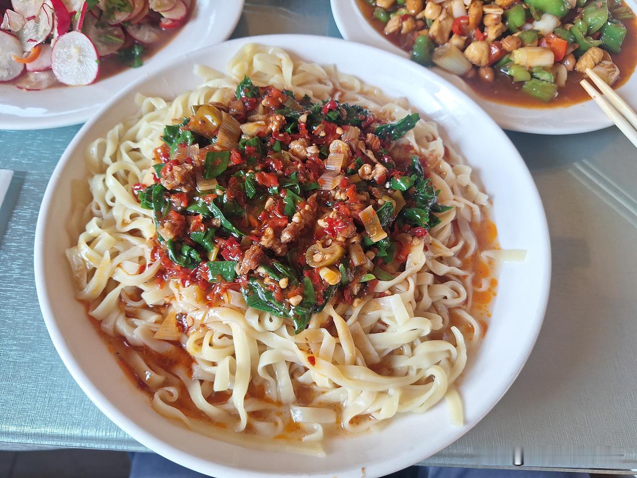 许多游客来新疆抱怨物价高,可是,看这么大一盘拌面,韭菜和肉沫,只要十二块钱,还有一个馕四五块钱,一天就够了。坐标就在乌鲁木齐,当然,景区贵是正常的,全国都如此,赛里木湖景区内这一盘要38。