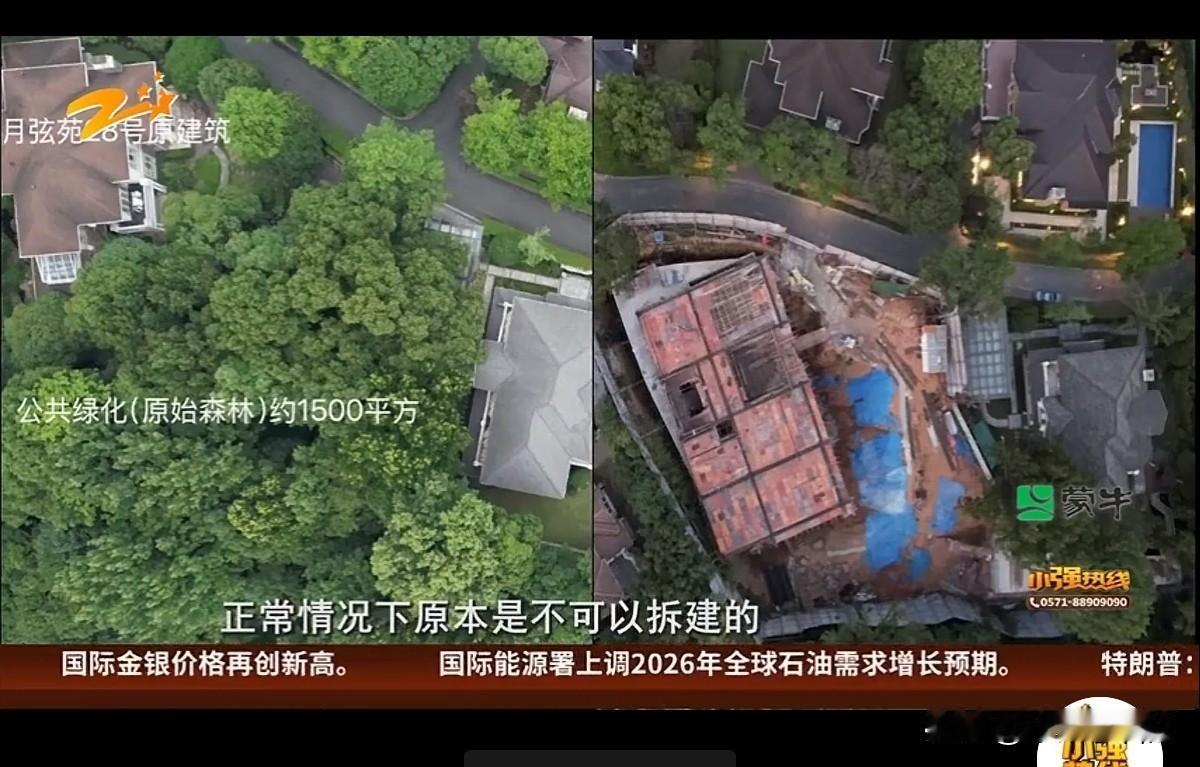 “就是眼红?”浙江杭州,女子家10多年前,花近千万购置一千多方的高档别墅。两年前她的邻居将别墅一个多亿二手转卖,没想到新邻居来后直接将别墅推倒扩建,原来落地面积200平改成落地面积700平左右,地下2层地下2层, 女子大为惊讶!可让她坐不住了的是,改建时,竟破坏了两家之间的绿地植被,将所有的30-50公分的参天大树全部砍伐殆尽。女子认为新邻居扩建超面积,街道协调时对方说不会超一平,如超出愿意拆除!女子感觉他施工仍在进行,便找来记者介入。 杭州某高档别墅区内,已居住十余年的高女士从未想过,一片相伴多年的1500平方米绿地会突然消失。 2026年,她站在自家南侧原本绿意盎然的区域,眼前只剩稀疏草坪与施工痕迹,那些直径30至50公分的参天大树早已不见踪影。 这场变故的源头,要追溯到2023年7月搬来的新邻居赵先生。 高女士的别墅总价近千万,在小区内本属优质房源,而邻居却将别墅以1个多亿二手卖给赵先生。面积和她家一样一千多平。 然而,赵先生到来后,并未不是重新改修,而是推倒扩建,高女士惊愕不已:有钱就是任性!这可是一个多亿! 人家想怎样那是人家的事,她未曾预料,这份任性会直接影响到自己的生活。 施工围挡很快围起了隔壁别墅,轰鸣的拆建工程打破了小区的宁静。 赵先生原别墅为地上两层、地下一层的结构,落地面积约200平方米。 而赵先生的重建方案堪称“颠覆性”:单层落地面积扩展至700平方米,规划建设地上两层、地下两层的四层建筑。 让高女士无法接受的,是施工对公共绿地的破坏。 那片绿地像个天然氧吧,树木郁郁葱葱生长了许多年。高女士说,绿地位于两家别墅之间,属小区公共区域,却在赵先生施工期间被彻底清理,30-50公分树木全被砍伐殆尽。 她多方打听后得知,赵先生此举是为了修建地下室,这让她怀疑对方存在多占公共空间的行为。 尽管多次与赵先生沟通,但对方并未停止施工,邻里间的矛盾就此埋下。 她曾找到街道协调,对方否认多占,并表示多占一平,愿意拆除,可高女士发现施工仍在进行,她坐不住了,在2026年,联系了记者。 面对采访,赵先生选择拒绝回应。 记者随后前往小区物业了解情况,工作人员表示,赵先生的重建工程于今年正式推进,所有规划均按房产证登记面积上报,并未出现违规扩建的初步迹象。 街道办事处相关负责人则补充,经前期核查,暂未发现赵先生超出产权面积建设,且赵先生在之前的协商中明确承诺,若存在超建行为,愿意接受执法部门的拆除处理。 不过,调查也证实了赵先生破坏绿地的事实。 据悉,该绿地的产权归属一家酒店,赵先生仅通过租赁获得使用权。 相关部门明确指出,使用权并不包含破坏权限,城市绿地作为公共资源受法律严格保护,随意砍伐树木、损毁植被已涉嫌违规。 目前,相关部门已对赵先生作出处罚,要求其限期恢复绿地原貌,不仅要补种草坪,还需栽种灌木类植被,确保绿地生态功能得到修复。 但目前恢复标准有点低,仅仅种了些草,不符合要求的。执法中队也是对他们进行了指导,要求他们加种一些那个灌木。 街道表示,后续会和综合执法部门一起监督该户的施工行为。 有人说,女邻居是眼红了!过于较真!有没有侵占你私人空间,你这是折腾的哪份呢? 有人说,他是把地下室建好,在上种草坪,地上不超,地下超多了! 还有人说,为什么很多人指责这个女士,说她眼红?对方占用了公共面积,她维护自己合法权益,错了吗?如果你扩建,我也扩建,大家都扩建,那城市就不要规划了 更多网友则表示反对,强调公共绿地是全体业主的共同资源,不能因个人财力雄厚就肆意破坏,城市规划与公共利益需要得到尊重。 赵先生虽拥有亿元别墅的产权,但对租赁的公共绿地仅有合理使用权,无权进行破坏性改造。 目前,相关部门已表示将持续跟进绿地恢复情况,高女士也希望邻居能真正履行承诺,让曾经的“天然氧吧”早日回归。 对此,您认为高女士是多事吗?她做的对吗?