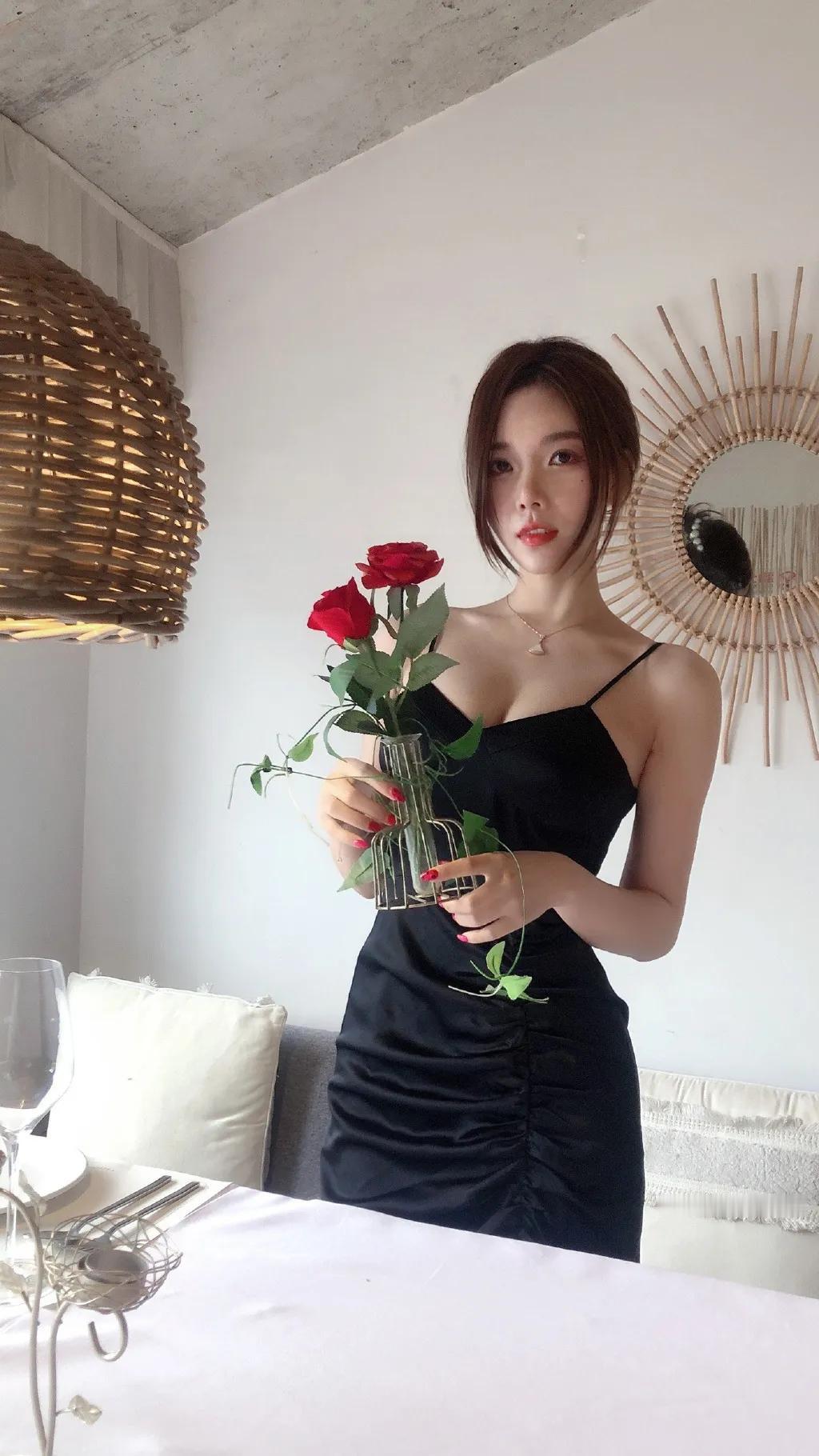 玫瑰映美人,情意绵绵。