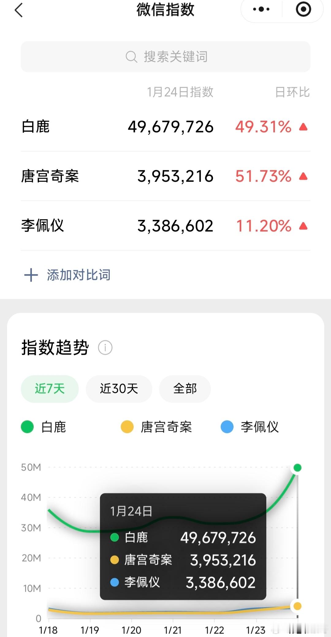 白鹿这几天的数据这么牛,连带着唐宫奇案和李佩仪都一直在往上冲,微指还是非在播剧女艺人断层第一,[白鹿][唐宫奇案]的微指、百指一直在涨,形势这么好,所以剧方赶紧多放点物料吧