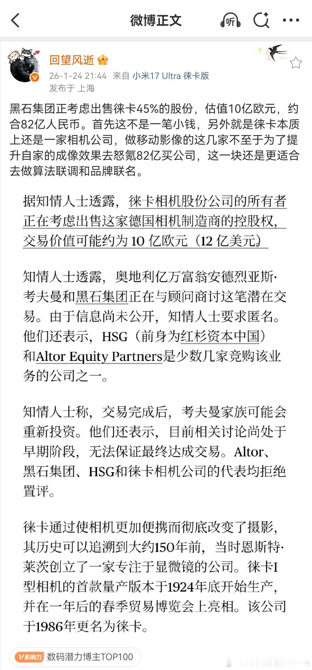 徕卡这牌子吧,你要是一百多亿买来当个相机公司那肯定不值,但你要把它当成轻奢品牌去
