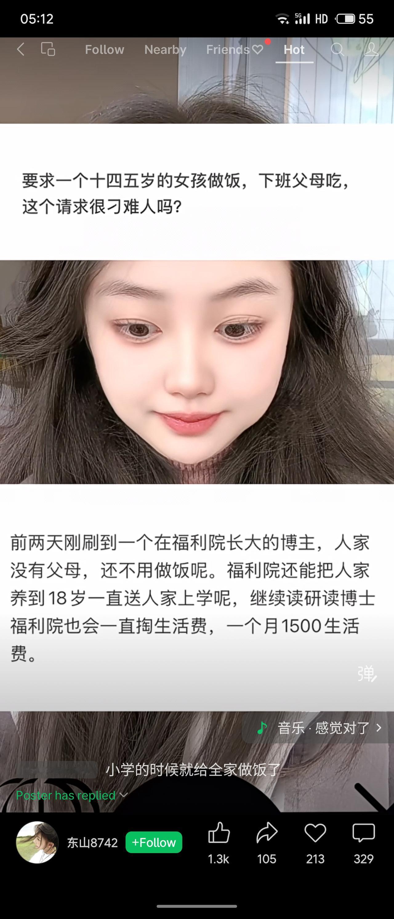 一博主在福利院长大,机构提供全面照顾与生活保障,并一直支持其学业至研究生阶段,每月发放1500元生活费。