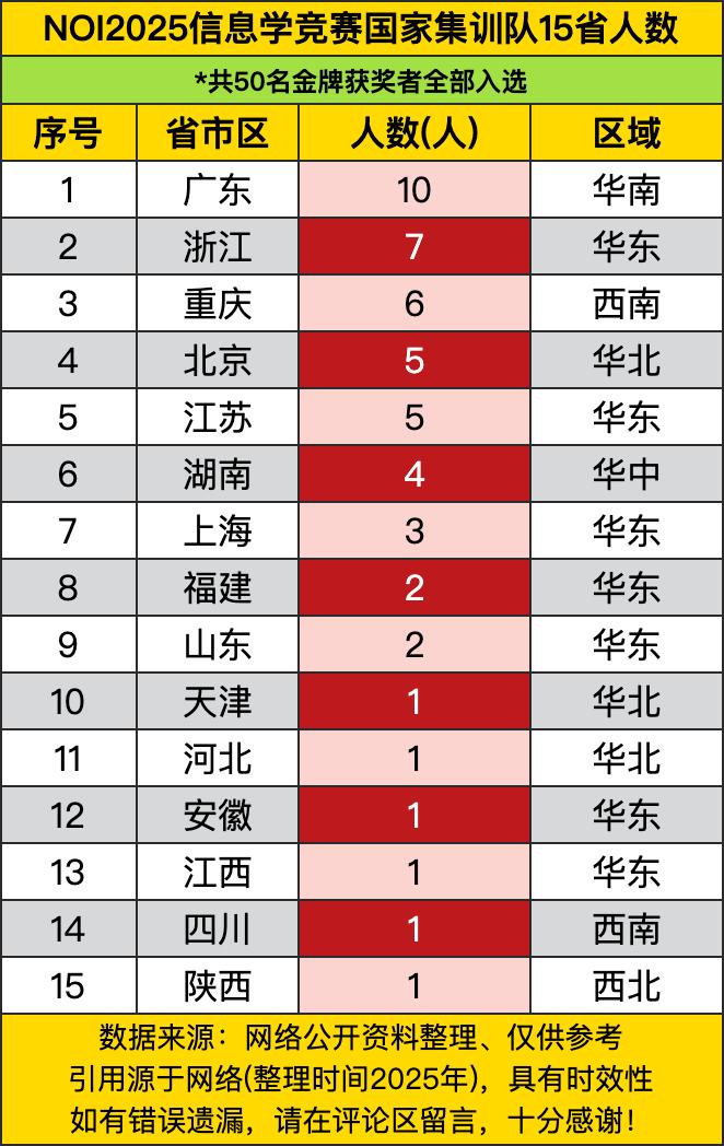 广东那可真是遥遥领先呐,10个人入选,就像竞赛界的“扛把子”,把其他省份远远甩在