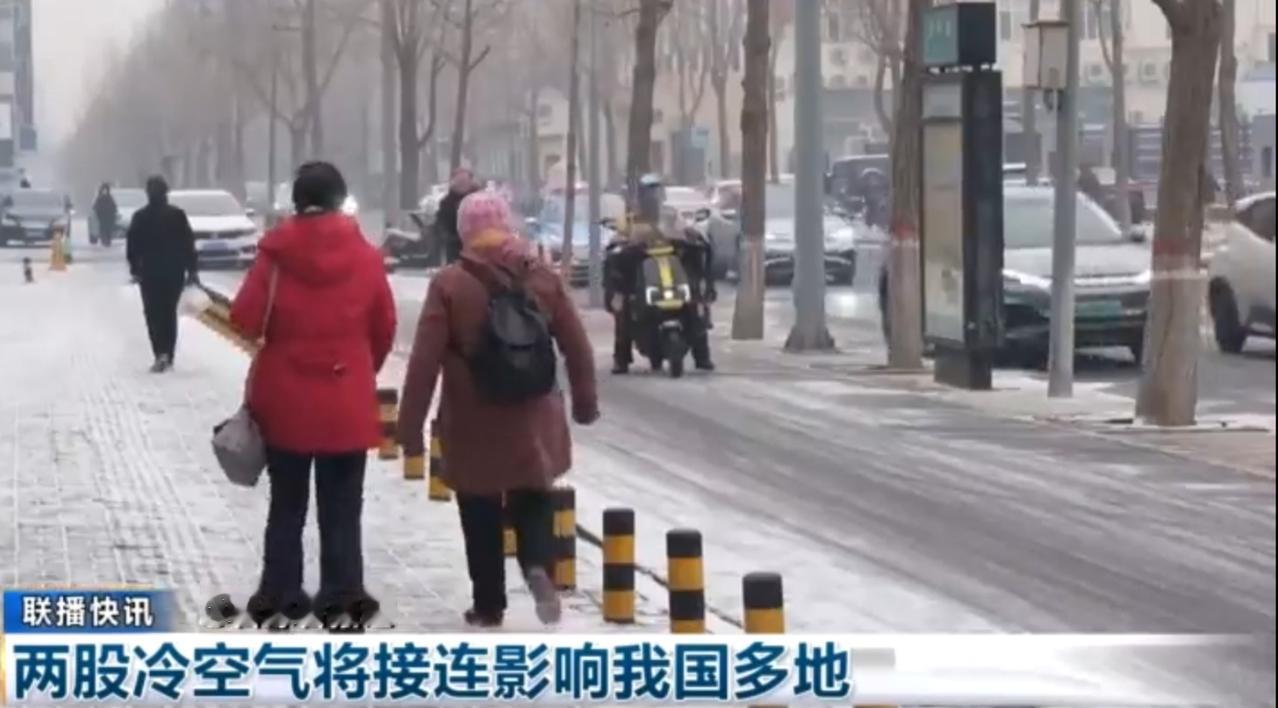 两股冷空气正接连影响我国多地,城市街头被寒意笼罩,行人裹紧衣物匆匆赶路,路面残留着薄冰与积雪,环卫工人坚守岗位清理路面积雪。此次降温过程持续时间长、影响范围广,提醒公众做好防寒保暖措施,注意出行安全,共同应对低温天气带来的挑战。