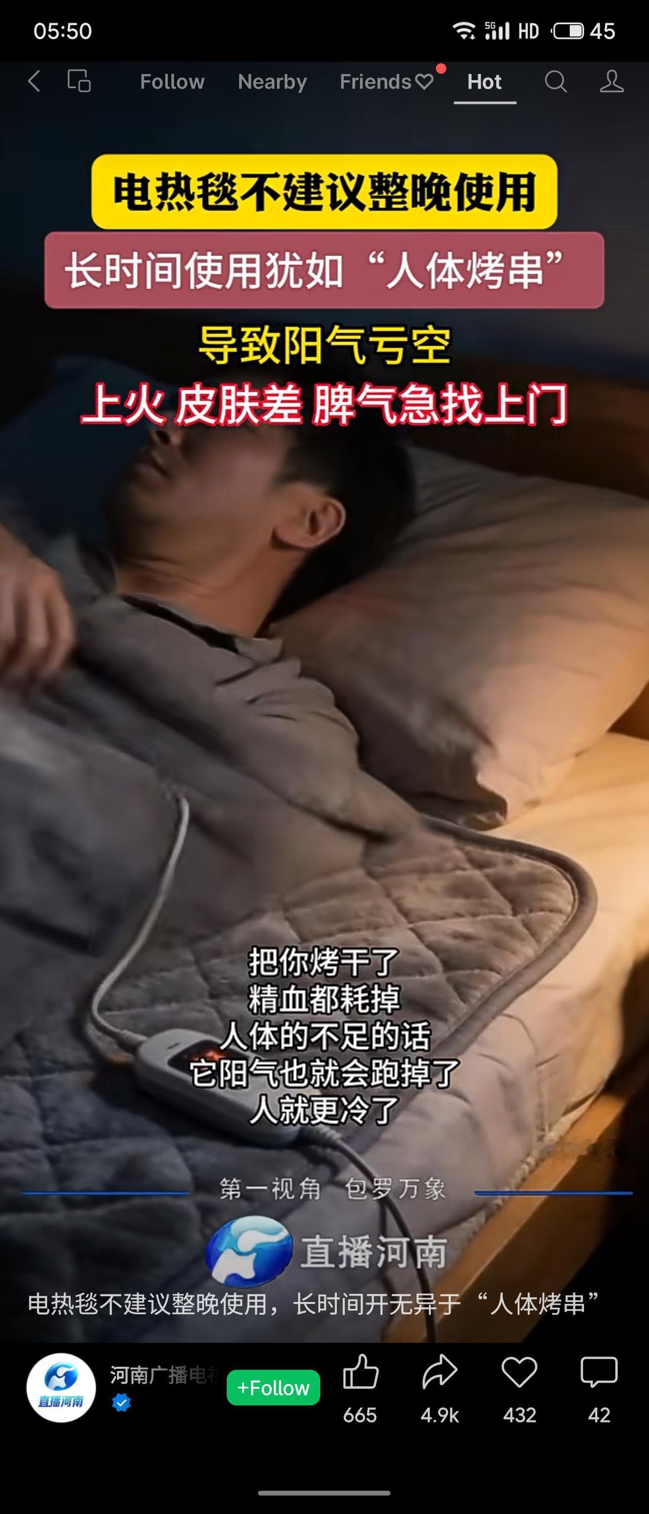 中医观点认为,电热毯不宜整夜使用,仅建议睡前预热被褥。若长时间使用,其持续燥热可能耗伤人体阴液与精血,导致“上火”,表现为口干舌燥、皮肤不佳、脾气急躁等类似被“烤干”的阴虚症状。