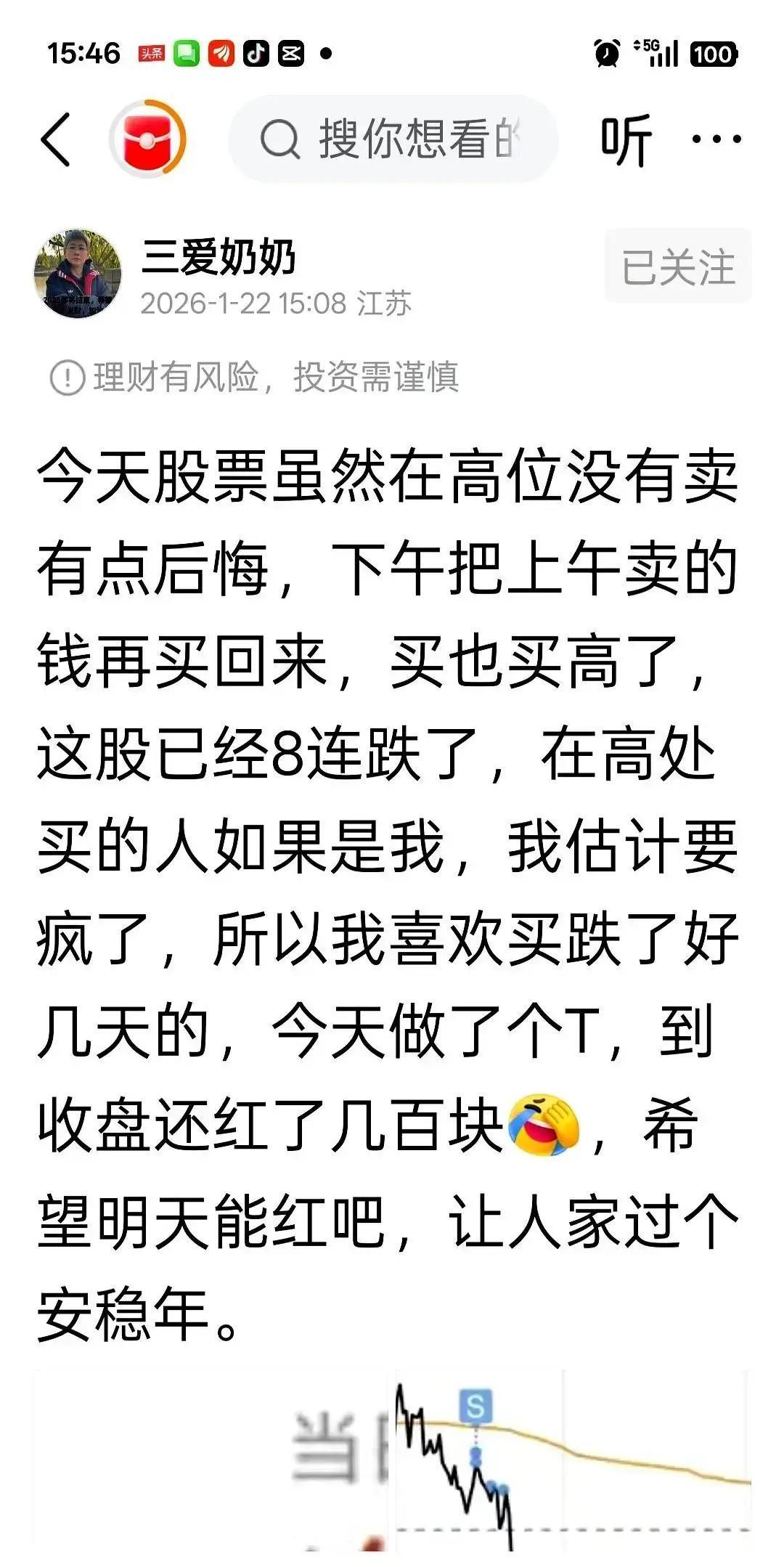 收盘后,老太太看着账户里多出来的几百块钱,起身去倒水,嘴里还哼起了小调 谁能想到,就在几个小时前,她还死死盯着那只连跌了快八天的股票,一咬牙给卖了一半 屏幕上,那些军工、航空股涨得跟不要钱似的,就她那个,趴在角落里绿得人心慌 结果下午开盘,她又鬼使神差地,在差不多的价位给接了回来 你说,这市场里折腾,靠的到底是技术分析,还是就那么点儿胆量,或者说,纯粹是运气
