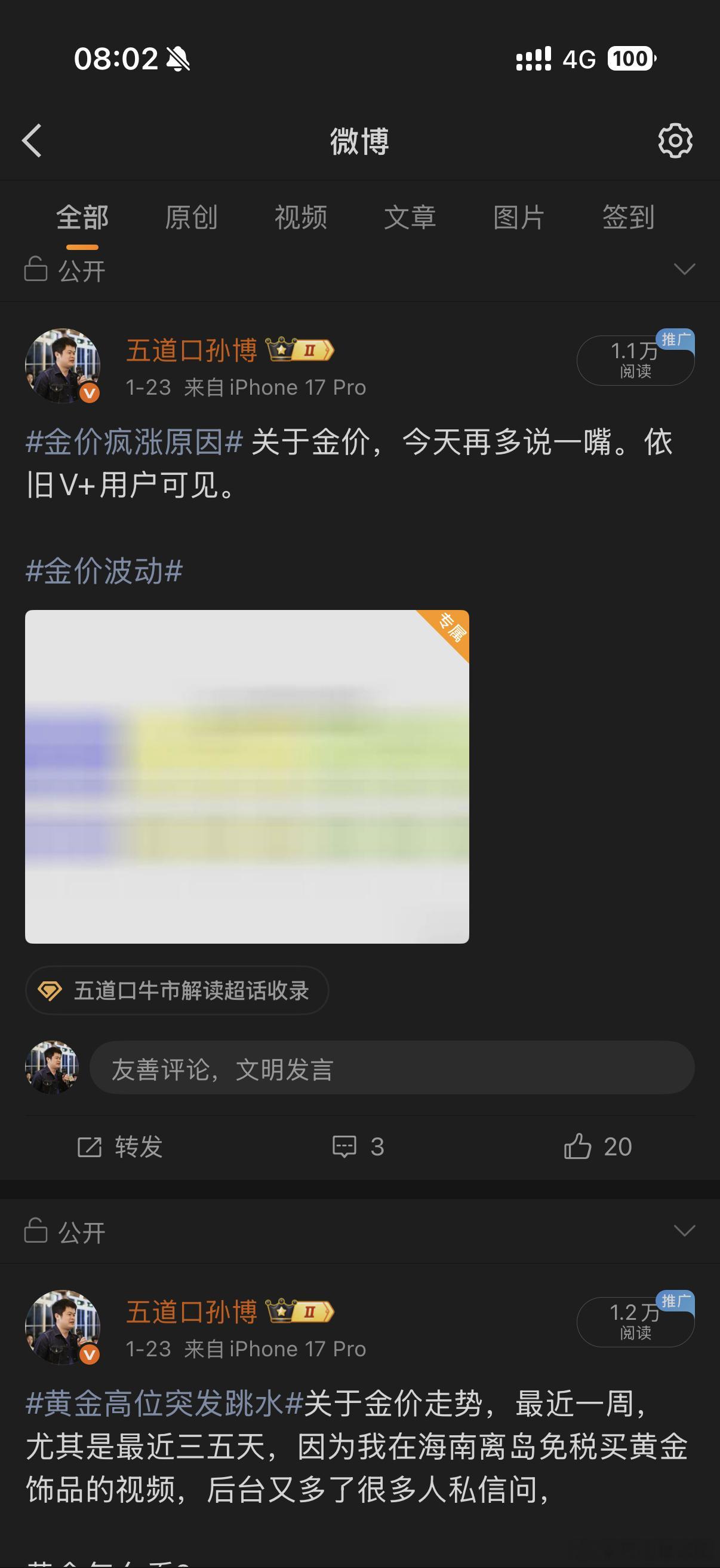 金价波动 隔了一个周末,黄金直接突破5000美元一盎司的关口。周五写了两篇V+(网页链接 ),还是持续维持判断。别人贪婪我更贪婪,别人恐惧我更恐惧。 现货黄金突破5000美元