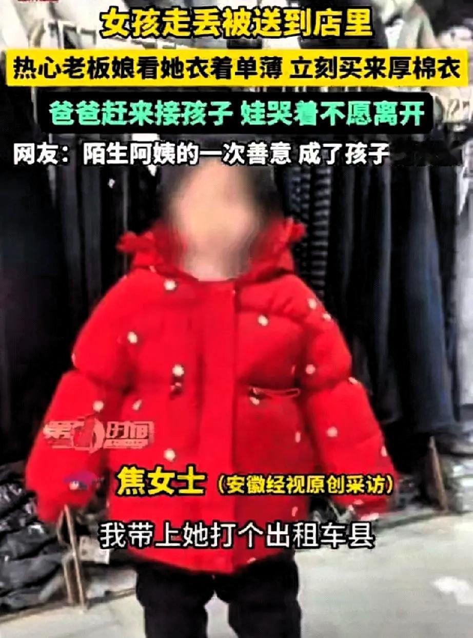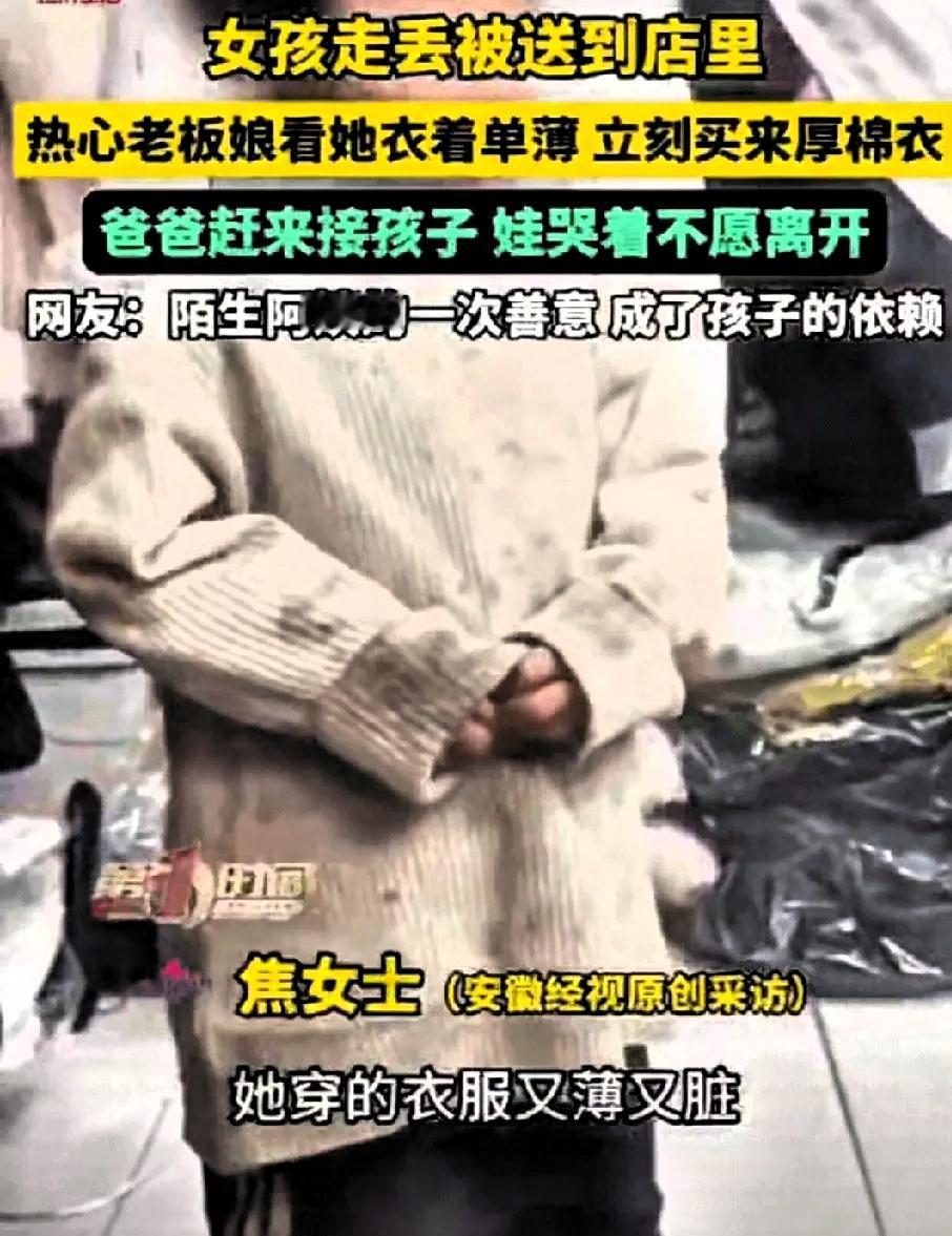 这谁顶得住啊?小女孩走丢被饭馆老板娘收留,洗了澡换了新衣裳。 亲爸来接时竟抱着老板娘哭到撕心裂肺,死活喊着“不要回家”,这一幕看哭无数网友,背后的隐情更是让人心里发酸。 孩子被粉丝送到焦女士饭馆时,小手冻得通红,衣服脏得看不出原色,怯生生地站在角落不说话。焦女士先给孩子端上热乎饭菜,见一直没人找过来,便关了店门带孩子去商场买了一身新衣服,还细心帮孩子洗了澡。就是这短短半天的温柔照料,成了孩子心里最贪恋的温暖。 晚上孩子爸爸匆匆赶来,谁料女孩一见他就转身死死抱住焦女士的腿,眼泪噼里啪啦往下掉,嘴里反复嘟囔“不走,要阿姨”。第一次没接成,第二天爸爸再来,孩子还是缩在焦女士身边不肯动,直到第三天,焦女士蹲下来柔声劝说,孩子才勉强被爸爸抱走。 后来大家才知道,女孩家里条件艰难,妈妈是残疾人,无法走路也不能说话,她还有个龙凤胎弟弟,全家的重担都压在爸爸肩上。爸爸忙着讨生活,能顾得上孩子的温饱就不错了,根本没精力给孩子细致的陪伴和呵护,焦女士那半天的关心,是她从未体会过的“妈妈般的温暖”。 这事儿让人感慨,养孩子从来不是只管吃饱穿暖就够了,孩子对情感的渴望,远比我们想象的更强烈。陌生人的善意能照亮孩子一时的路,但家人的陪伴才是她一辈子的底气。焦女士之后还带着日用品去看望孩子,不少好心人也寄来衣服玩具,这份温暖让人动容。希望女孩的爸爸能在奔波生计的同时,多挤点时间陪陪孩子,别让她再贪恋外人的温柔。