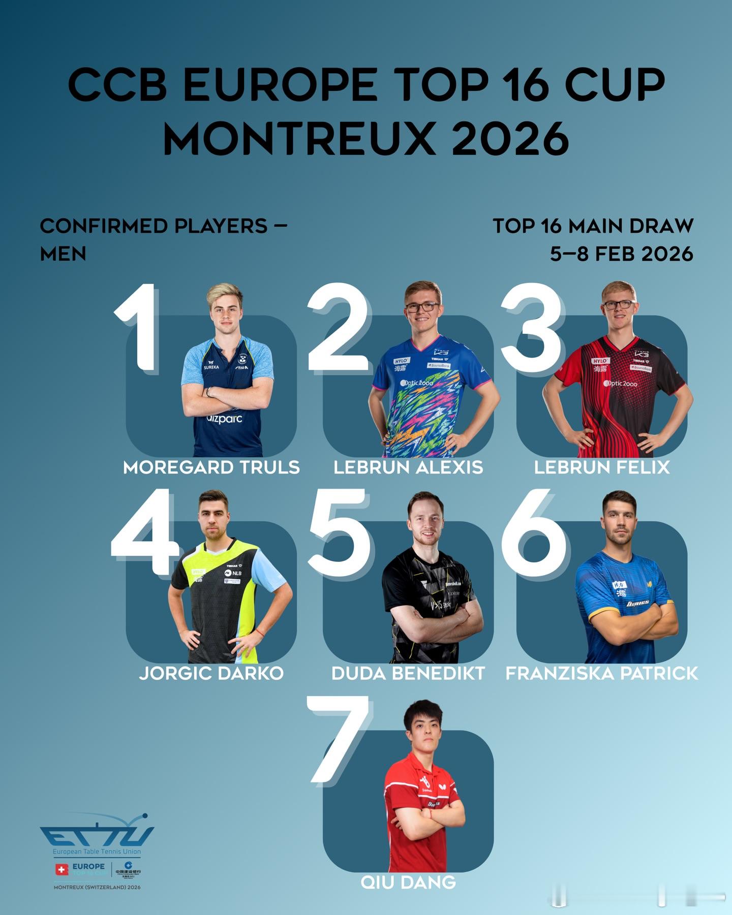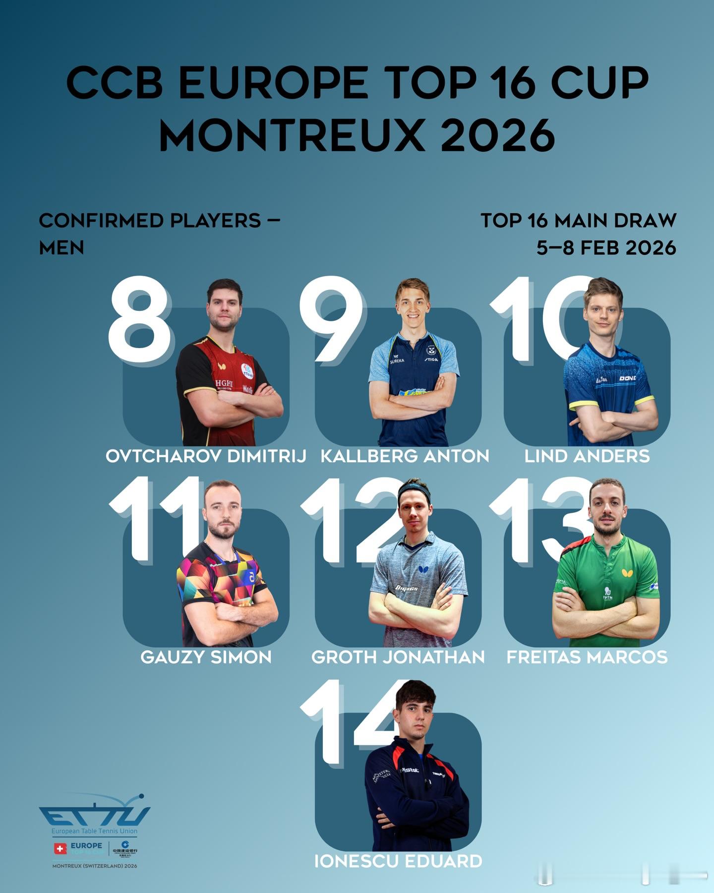 直接进入2026欧洲16强杯男单正赛的球员名单