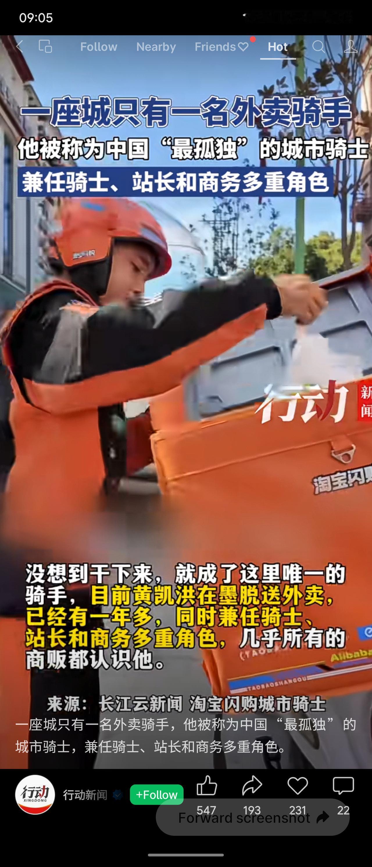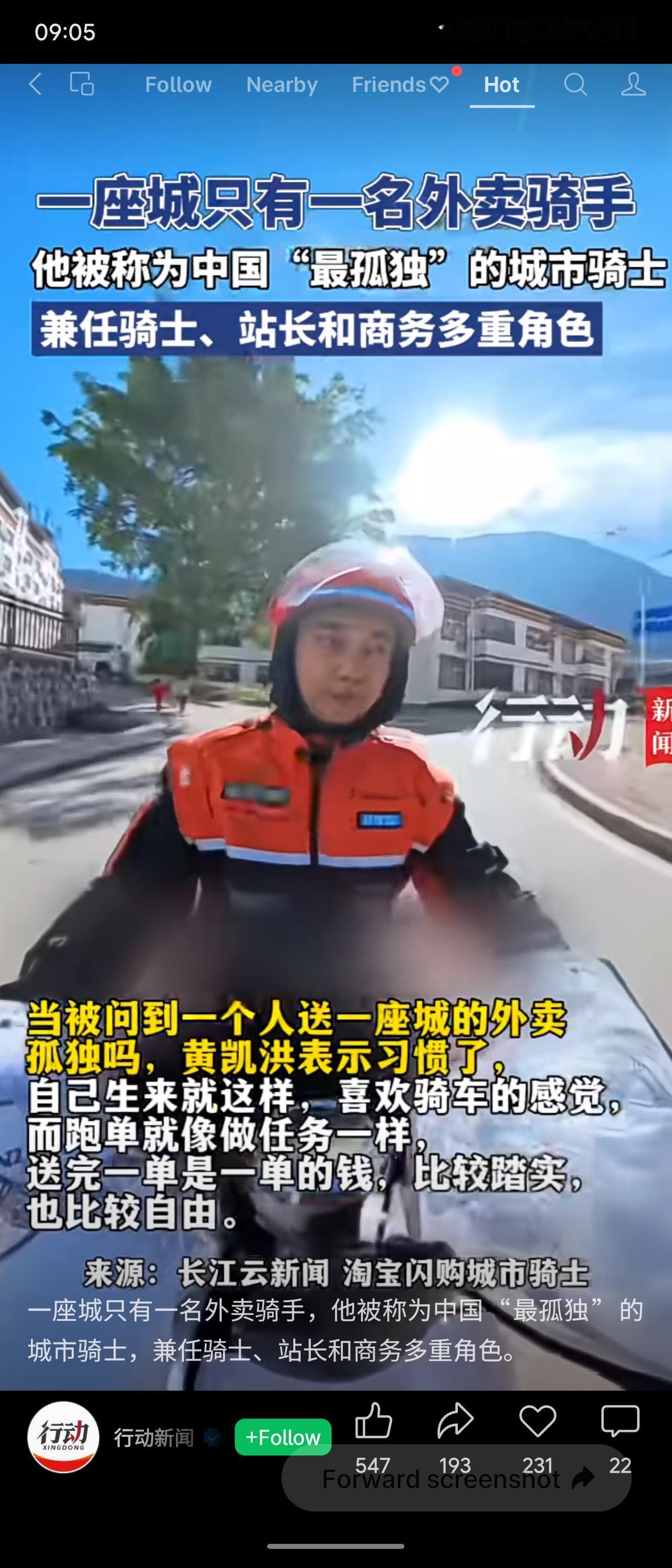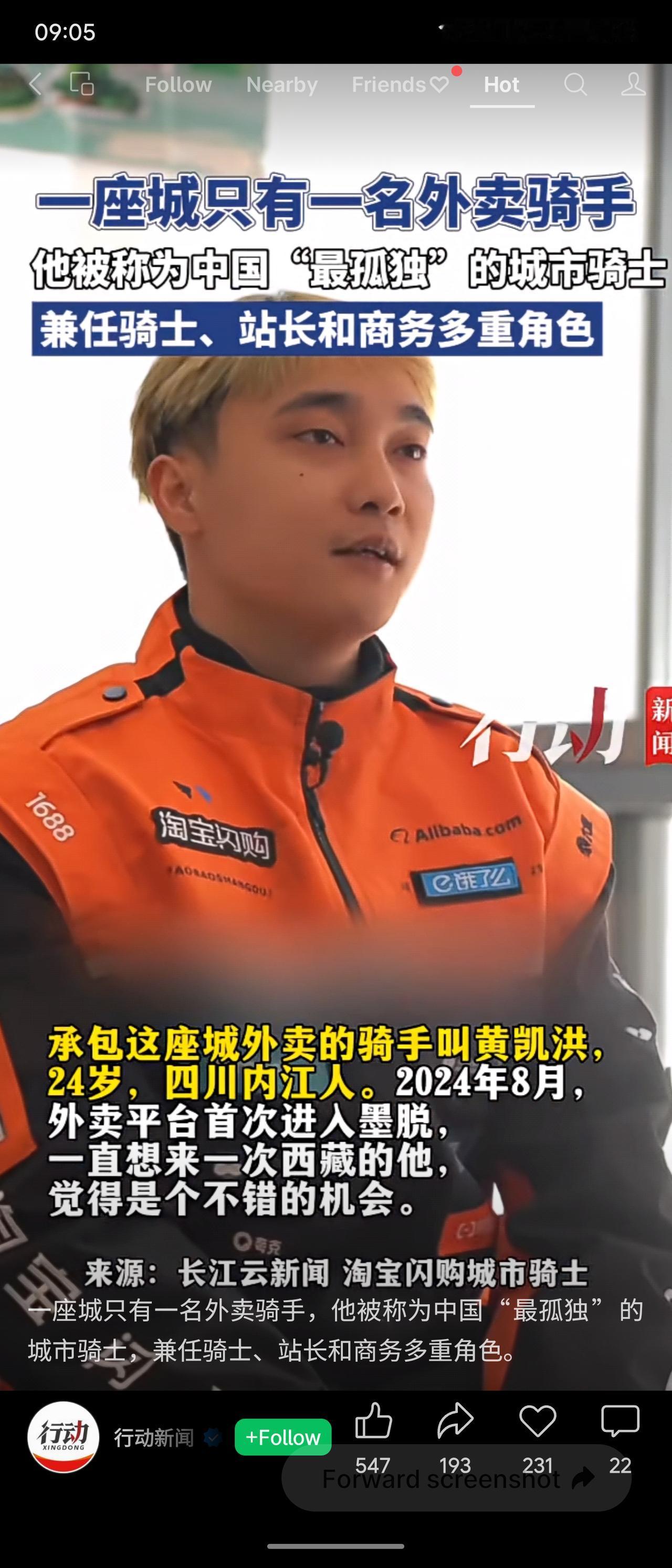 在西藏云雾缭绕的墨脱,雪山终年环抱,这里只有一名外卖骑手——黄凯涛。来自四川内江的他,自2024年8月起独自穿梭于小城街巷。当被问及一人服务整座城的感受,他笑着说“习惯了”,之余还念叨着喜欢武汉烤串和晚安的咸香。