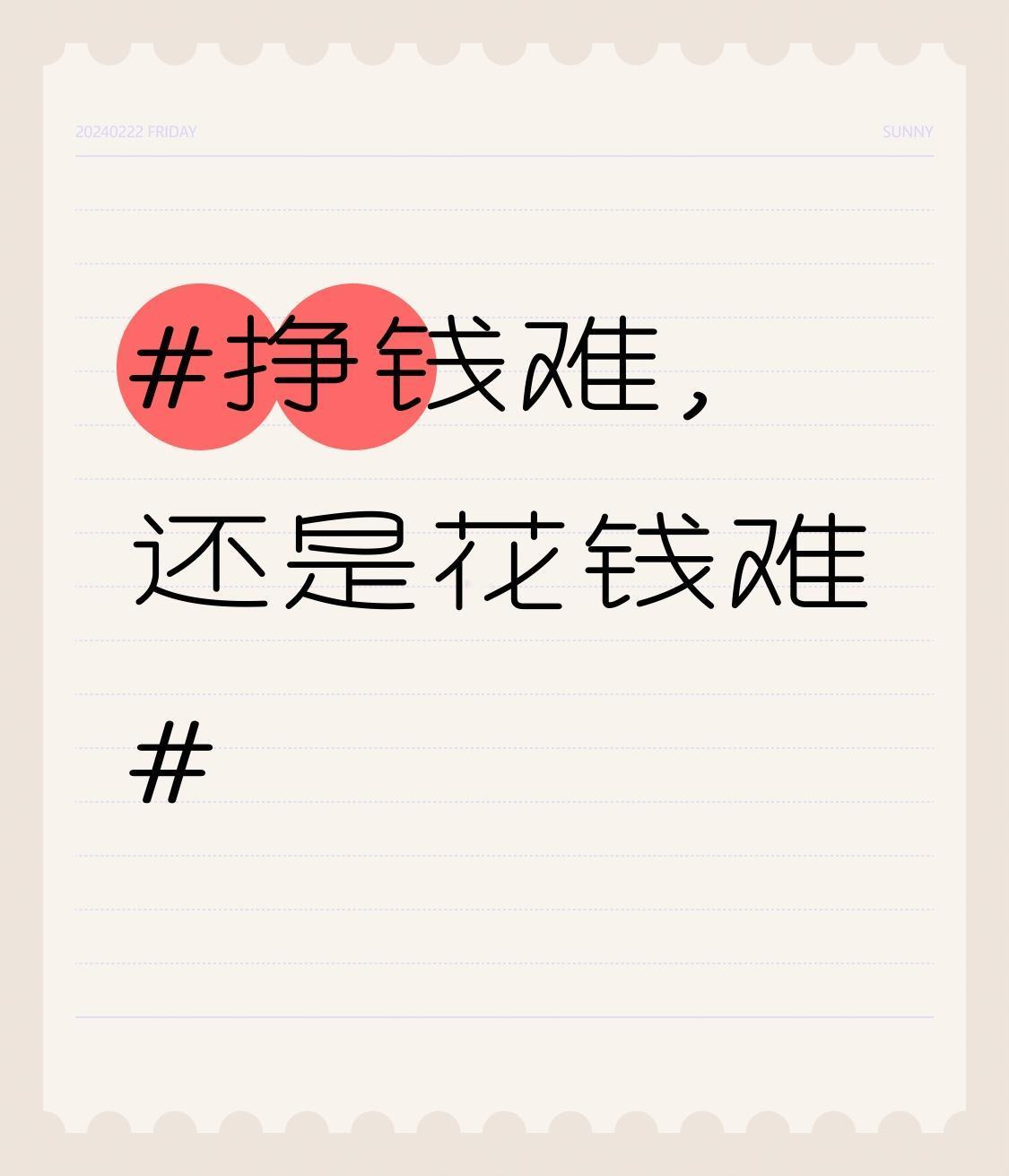挣钱难还是花钱难,这问题就像在问先有鸡还是先有蛋。挣钱那叫一个难,起早贪黑挤地铁、加班熬夜成常态,工资却只够应付生活基本开销。行业内卷严重,裁员风险高悬,想多赚点外快,没技能没时间,“钱难挣,屎难吃”这话真是一点不假。 花钱看似容易,但想攒下钱也难。朋友月薪一万二,工作五年却没存下一分钱。随礼、聚餐、买衣服,各种开销看似不多,加起来却把工资啃得精光。很多人还会为了一时享受疯狂剁手,而有的人买菜却为几块钱讨价还价。说到底,挣钱和攒钱都不易,且行且珍惜吧。