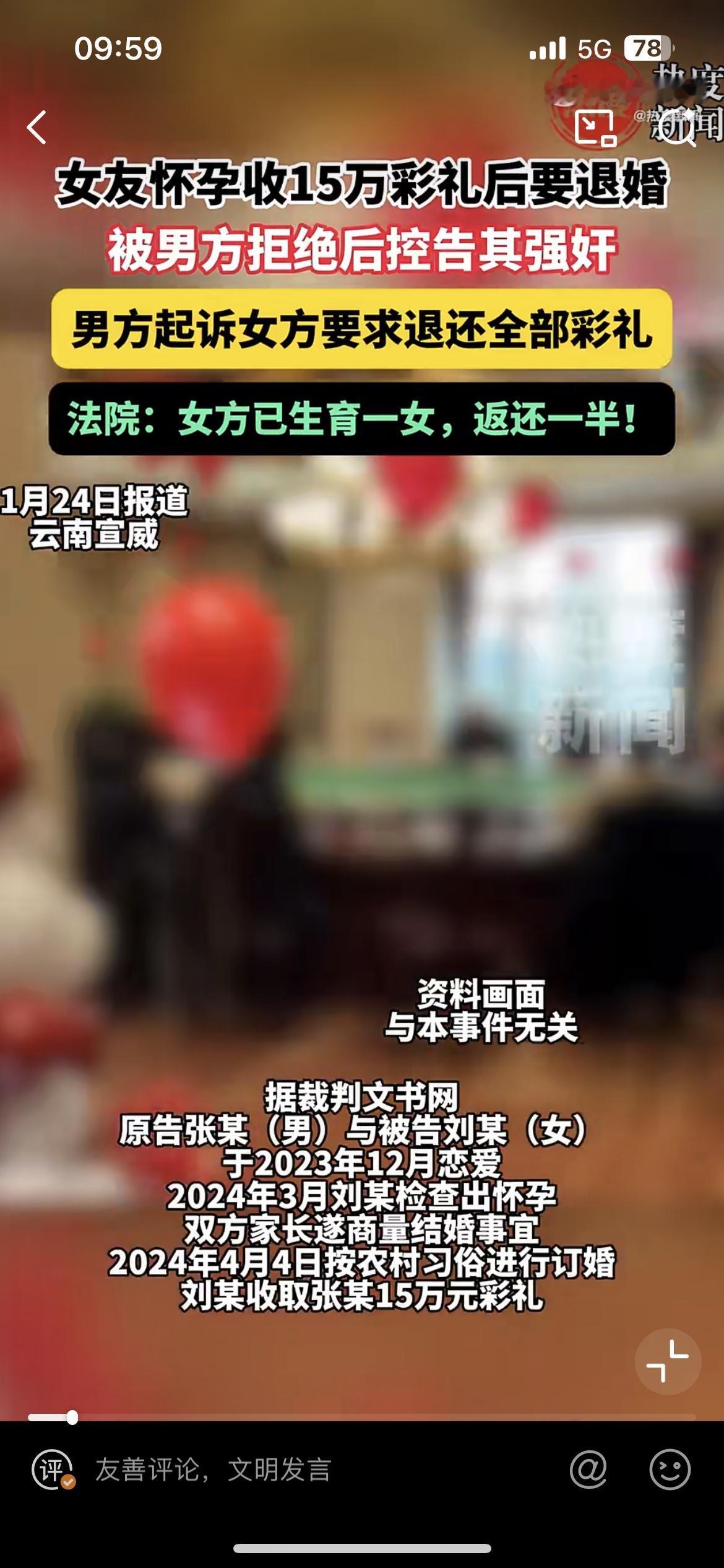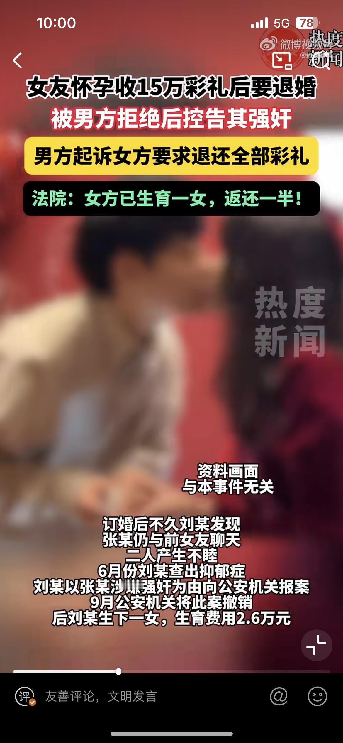 云南宣威女子退婚不成,告男方强奸,现在青年男女谈恋爱已经成为高风险行为了吗?宣威女子刘某和张某自由恋爱,谈婚论嫁后,张某家七拼八凑了15万彩礼,因为刘某发现张某和前任联系,心生不满,婚结不成,张某想退彩礼。刘某却报警称被张某强奸,还好警察还了张某清白,但是彩礼最后只退一半。婚內强奸案 婚內强奸