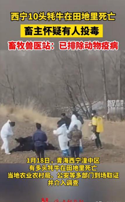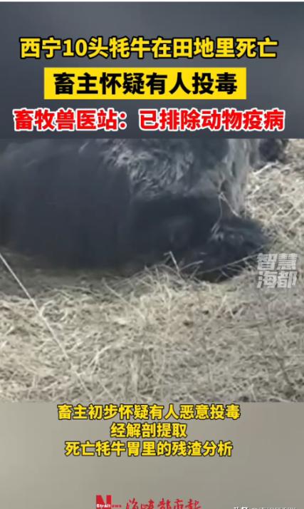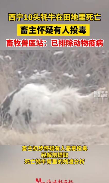 “严查到底!”1月18日,青海西宁,一名牧民养殖户清晨去田里查看时,竟发现自家放养的10头壮硕牦牛竟集体倒在田地里没了气息,口鼻还残留着异常分泌物。畜主心疼得直掉眼泪,怀疑有人恶意投毒,于是赶紧报警!网友:得罪谁了? 1月18日清晨,青海西宁湟中区的冻土还硬得像铁板。牧民才旦踩着碎冰往田垄走,脚下的嘎吱声在空旷的原野里显得格外刺耳,但他心里却在那几秒钟里空了一拍——太静了。 往常这个时候,那十头正在育肥的牦牛早就该发出此起彼伏的“哞哞”声,等着他添草料。但今天,风里没有一点活物的动静。当他转过那个熟悉的土坡,眼前的景象像一记重锤,直接把他砸蒙在原地。 那不是牲口休息的画面。十头体型壮硕、毛色黑亮的牦牛,横七竖八地倒在田地里。没有一头是卧姿,全是侧翻或扭曲的僵直状态。 才旦跌跌撞撞冲过去,手掌触碰到牛皮的瞬间,传回来的只有透骨的冰凉。更让人头皮发麻的是,每一头牛的口鼻处都挂着黄白相间的黏腻分泌物,嘴角溢出的白沫在零下十几度的气温里,已经凝结成了晶莹诡异的霜花。 这片田垄成了十座无声的坟茔。现场太干净了,没有两牛相斗的蹄印,没有濒死挣扎刨出的土坑。死亡来得极其精准且迅猛,仿佛某种看不见的力量在瞬间切断了这十个庞然大物的生机。 对于才旦来说,躺在地上的不仅仅是牲畜,那是他一家五口人全部的“现金流”。按照现在的行情,这一头育肥牛就是一万多块钱,十头就是十多万。 这笔账算起来让人心惊肉跳:母亲常年卧病在床的药罐子碎了,家里两个正在读大学的孩子的下学期学费,也随着这些牛的倒下化为泡影。 这是一种极度不对称的毁灭。为了这一天,才旦花了整整12年。从最初的三头牛犊,他在高原的风雪里熬了四千多个日夜,才慢慢繁衍到二十多头的规模。 特别是倒下的这十头,是他精心“开小灶”喂了两年的育肥牛,每天都要额外添加昂贵的精饲料。眼看着牛膘贴满了,再过两个月就能出栏变现,十二年的长跑眼看要撞线,却在终点前被人绊断了腿。 这种“精准爆破”让才旦想破了脑袋也找不到理由。他是个憨厚本分的牧民,平日里和乡邻相处得十分和睦。他扪心自问,从没碍过谁的生计,更没与人结下过什么解不开的仇怨。他在派出所做笔录时,眼泪在眼眶里打转,满脸都是被生活欺骗后的茫然。 官方的反应速度很快,这种规模的非正常死亡显然触动了红线。不到一小时,农业农村局、公安和兽医站的车就拉着警报停在了田边,黄色的警戒线迅速将这片死亡现场与外界隔绝。 穿白大褂的技术人员在现场完成了初步解剖。就在1月19日,官方通报给出了第一把“逻辑剪刀”:排除动物疫病。 这五个字分量极重。在青海,牛死并不少见,误食农药、霉变饲料中毒甚至自然疫病都有可能。但自然疫病通常有传播周期,误食毒草往往有先后顺序和剧烈的挣扎过程。 像这样十头牛在极短时间内、无挣扎地集体暴毙,在生物学上是一个极端的异常值。排除了天灾,剩下的那个选项,无论多残酷,都是唯一的真相。 那些被带走的胃容物和血液样本,此刻正在实验室的离心机里高速旋转。那里面分离出的不仅是某种高毒性的化学物质,更是人心深处难以直视的幽暗。 消息在网上传开后,无数网友的质问聚焦在了一点:“到底得罪谁了?”这句看似简单的疑问,折射出的是一种对底层互害的深深恐惧。在熟人社会逐渐瓦解的今天,不需要杀父之仇,或许仅仅是嫉妒,或者一点口角,就能诱发一场毁灭性的报复。 对于依然守在高原上的养殖户们来说,才旦的遭遇是一份沉重的“避坑指南”。过去养牛防盗靠的是大黄狗,靠的是邻里守望,现在看来,这些温情的老规矩已经挡不住暗处的恶意了。 才旦还在等一个公道,而更多的牧民已经开始默默计算安装高清摄像头和电子围栏的成本。在这个寒冷的冬天,冷冰冰的技术设备,正在被迫成为比人心更值得信任的守护者。 参考信息: (2026, 1 月 19 日). 西宁有牦牛在田地死亡 畜牧站:畜主怀疑投毒 已排除动物疫病. 新京报.