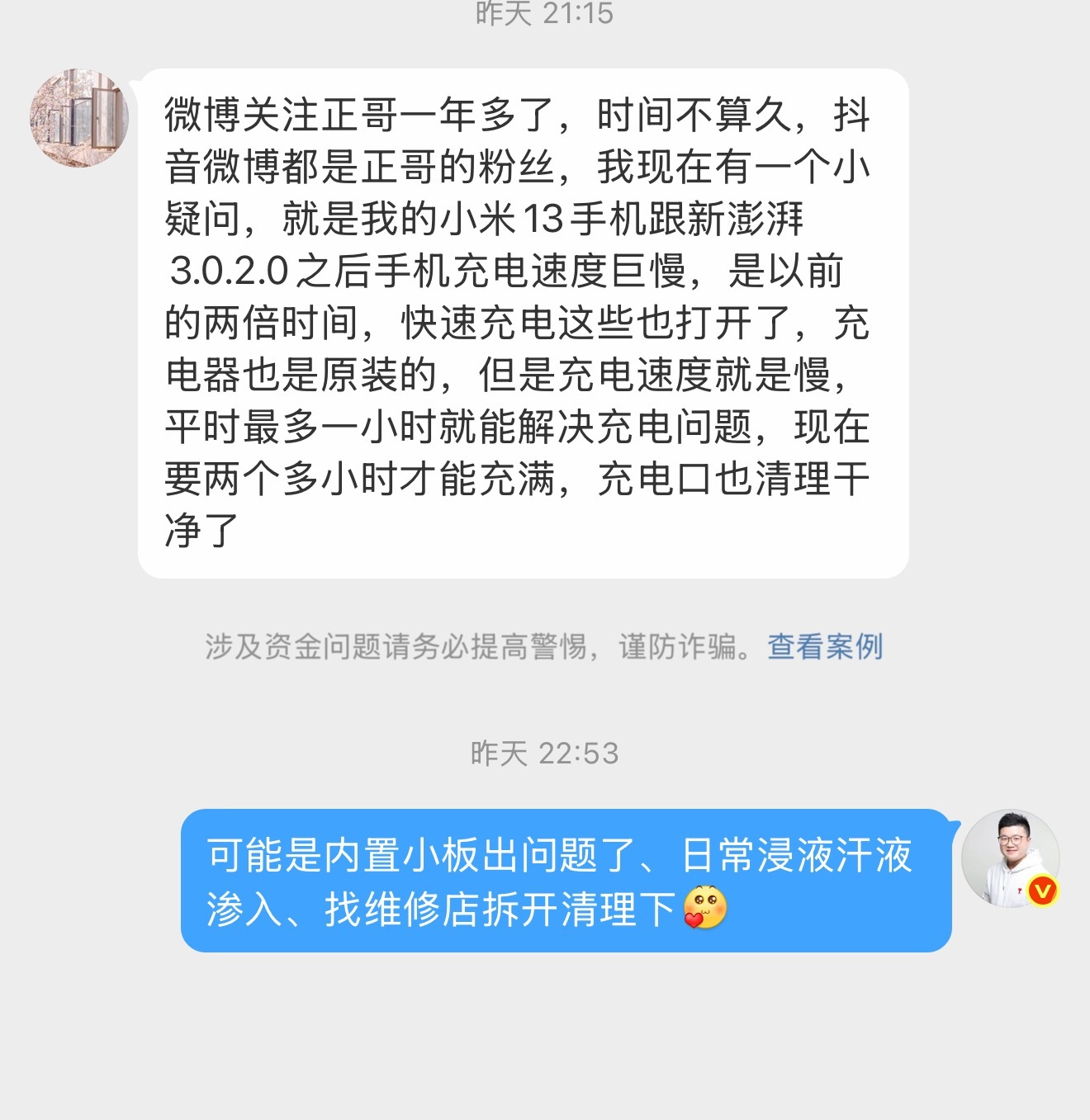 后台收到粉丝留言、说小米13升级了澎湃os3之后充电很慢、根据我的经验判断、升级系统不会影响硬件、有可能是长期使用之后、尾部借口浸液导致充电小板工作不良或损坏、导致不能握手小米的快充协议、到维修店三板斧搞一下、一拆二洗三测试、搞不定就换小板、搞定付50给维修师傅就行啦!