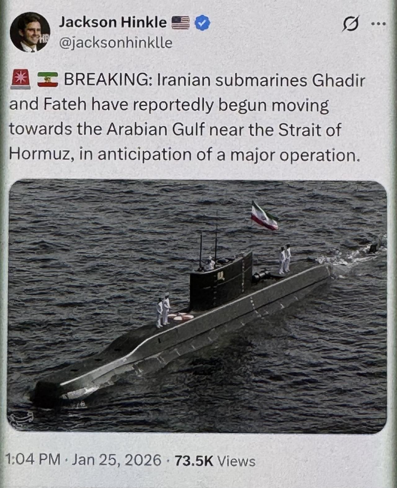 突发:据报道,伊朗“卡迪尔”号与“法塔赫”号潜艇已开始驶向霍尔木兹海峡附近的阿拉伯湾,似乎在准备一场重大行动。 波斯湾的火药味又浓了!伊朗两艘潜艇直奔霍尔木兹海峡,这明显是对美以军事动作的强硬回应。一边是美军航母压境,一边是伊朗潜艇亮剑,霍尔木兹海峡这个全球石油命脉,眼看就要变成大国角力的棋盘。 伊朗这招说白了就是美以逼出来的强硬表态,表面是亮剑示强,实则把防守和威慑玩得明明白白,专挑美军和以色列的软肋下手。 美军近期可不是简单摆样子,“林肯”号航母打击群正带着F-35C隐形舰载机往中东赶,还有宙斯盾驱逐舰、巡航导弹核潜艇跟着凑数,舰载机、战斧导弹一应俱全,以色列那边也跟着煽风点火,一副随时要动武的架势,这换谁都得亮家伙反击。 但伊朗精明得很,不跟美军拼航母编队的硬实力,毕竟论海面火力根本不是一个量级,反而转头掐住霍尔木兹海峡这个命门,这招简直精准又狠辣。 要知道霍尔木兹海峡可不是普通水道,是波斯湾通向印度洋的唯一通道,相当于全球石油运输的咽喉,每天有近2000万桶石油从这儿过,占了全球日消费的五分之一,连液化天然气都有两成走这条道。 最窄处才不到40公里,伊朗守着北岸,相当于把这道石油闸门攥在手里,美军航母再威风,也得忌惮这一点——真把伊朗逼急了,哪怕不直接封锁,只是在海峡里搞点动作,全球油价都得掀波澜,西方经济体就得跟着难受。 这种伤敌一千自损八百但对方更疼的玩法,伊朗早就轻车熟路。 派“卡迪尔”号和“法塔赫”号潜艇过去,比派水面舰艇更有威慑力。霍尔木兹海峡地形复杂,暗礁、浅滩遍地都是,平均水深才70米,最浅处不过10多米,这种环境下潜艇的隐蔽性优势直接拉满,美军航母再先进,也怕水下突然冒出来的“不速之客”。 而且这两艘潜艇本就是伊朗针对近海作战打造的,灵活度够高,适合在海峡这种狭窄水域活动,往这儿一部署,相当于给美军舰队套上了一层水下枷锁,你敢在我家门口晃悠,我就敢在你眼皮子底下藏着杀招,这种心理威慑比单纯的火力展示管用多了。 这也不是伊朗第一次拿霍尔木兹海峡做文章,2025年6月美以相继对伊朗发动袭击后,伊朗议会就明确表态要考虑关闭海峡,虽然最终决定权在最高国家安全委员会,但已经把态度摆得清清楚楚——我的底线就是家门口的安全,你敢越界,我就敢动你的石油命脉。 当时美军虽然增派了兵力,但也没敢真的动手,核心就是怕伊朗真的封锁海峡,引发全球能源危机,这种博弈早就有过先例。现在派潜艇过去,就是把之前的口头警告变成实际动作,用水下力量形成常态化威慑,告诉美以别轻举妄动。 美以心里其实也门儿清,伊朗这招看似被动防守,实则掌握了博弈的主动权。 美军航母压境无非是想秀肌肉施压,逼伊朗妥协,但伊朗不吃这一套,反而直接掐住最关键的能源通道,相当于反过来给美以画了红线。 以色列虽然跟着美军起哄,但自身能源供应也受霍尔木兹海峡影响,真闹僵了也讨不到好。 说白了,这场角力里,伊朗看似处于弱势,却靠着霍尔木兹海峡这张王牌,把威慑力拉到了最大化,你敢秀肌肉,我就敢掐喉咙,这种你来我往的试探,本质上就是谁也不敢先打破平衡,但伊朗显然已经把主动权攥在了自己手里,用最低成本达成了最强硬的回应。