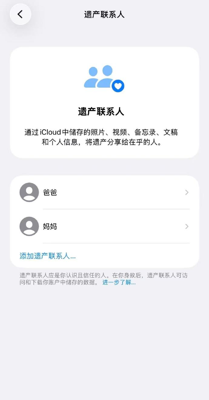 手机还有多少我不知道的功能 那还得是这个比较抽象的遗产联系人功能吧,没想到这么小众的东西竟然被果子给开发出来了