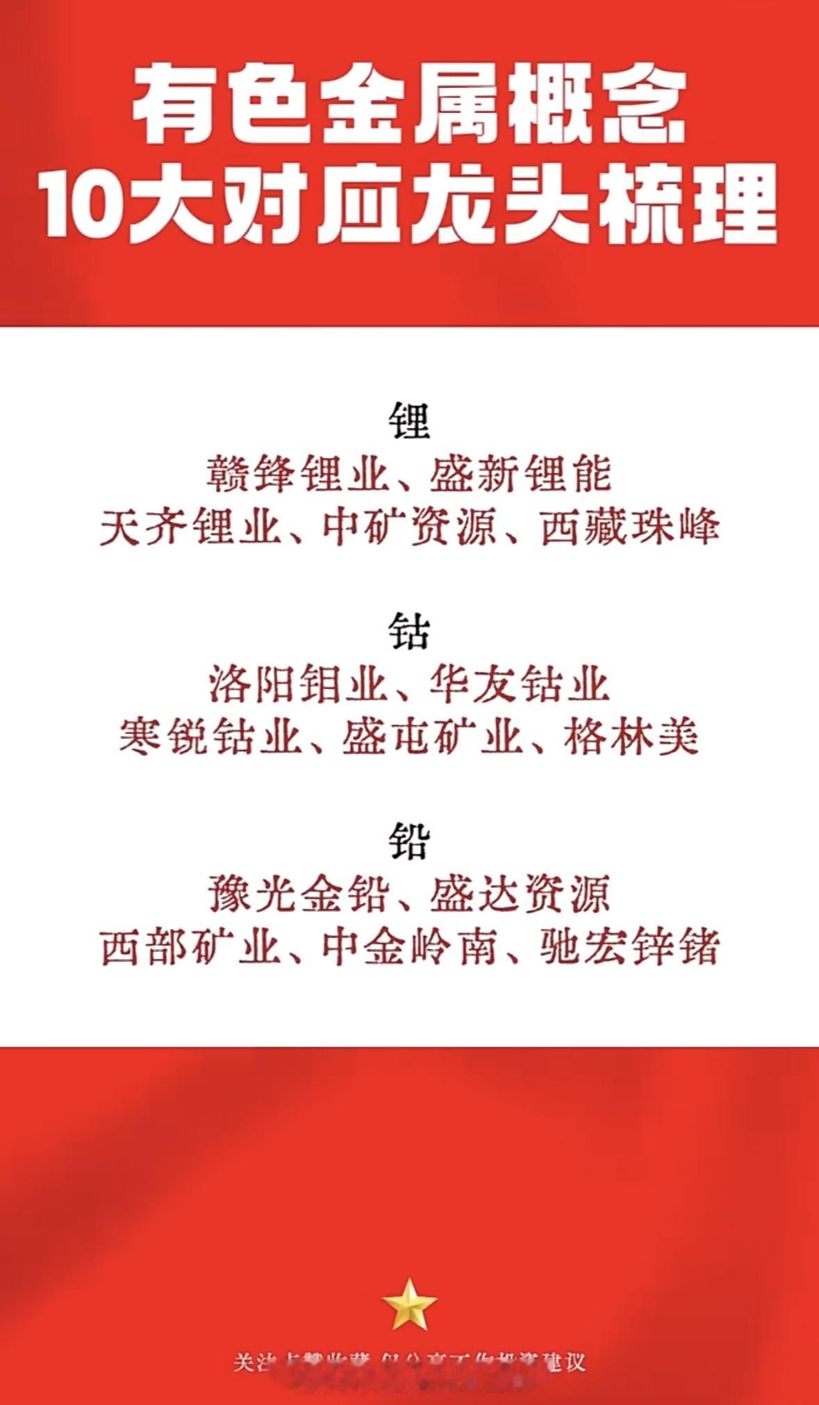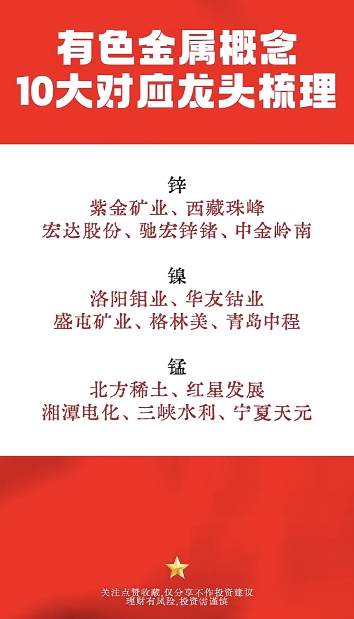 有色金属概念龙头梳理,10大公司全揭晓! "有色金属龙头盘点:黄金看紫金、中金等,白银关注山东黄金,铜业龙头有江铜、洛钼。理财需谨慎,收藏备用!"
