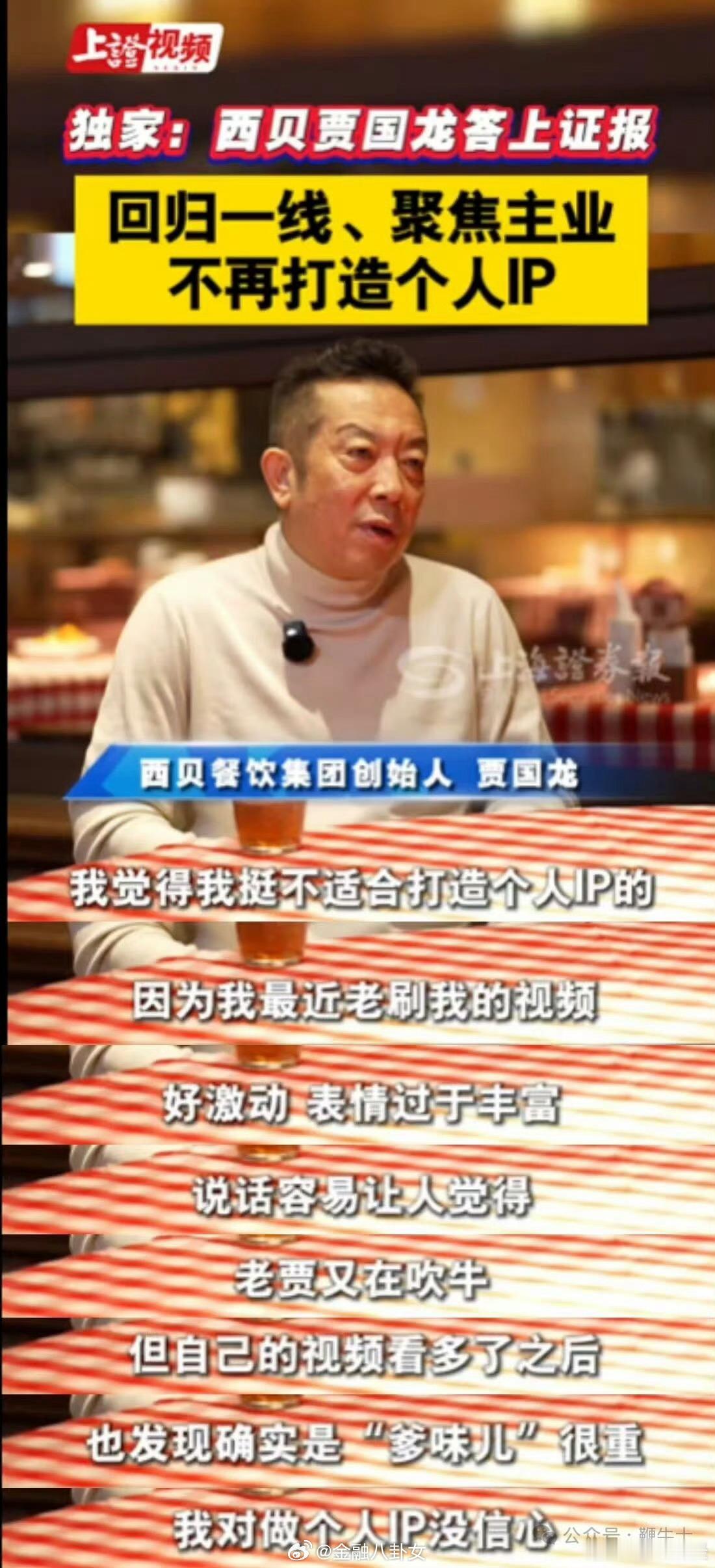 贾国龙最新回应表示,发现自己爹味儿很重,不再打造个人IP