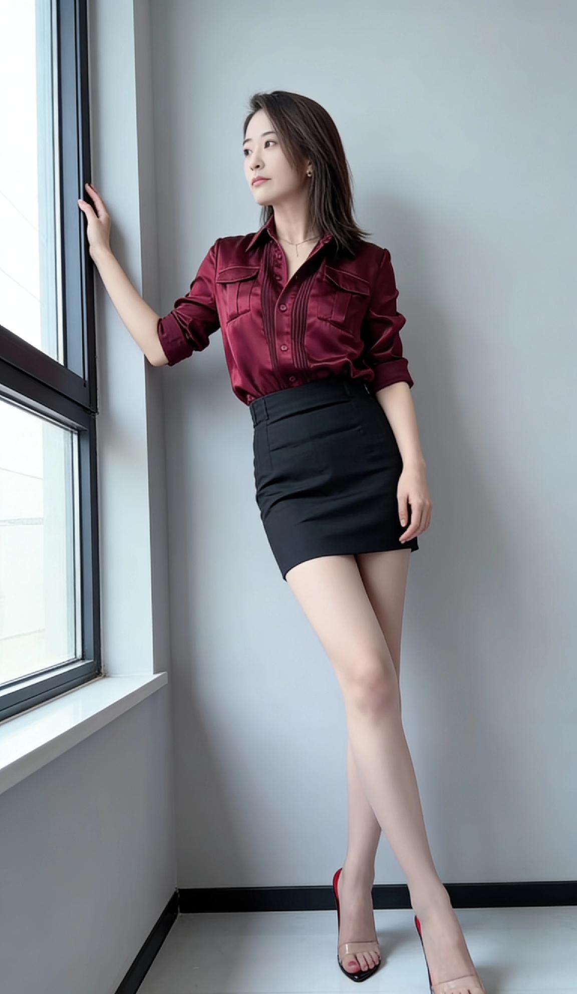 优雅职场风,自信红唇,高跟鞋,职场女性魅力!