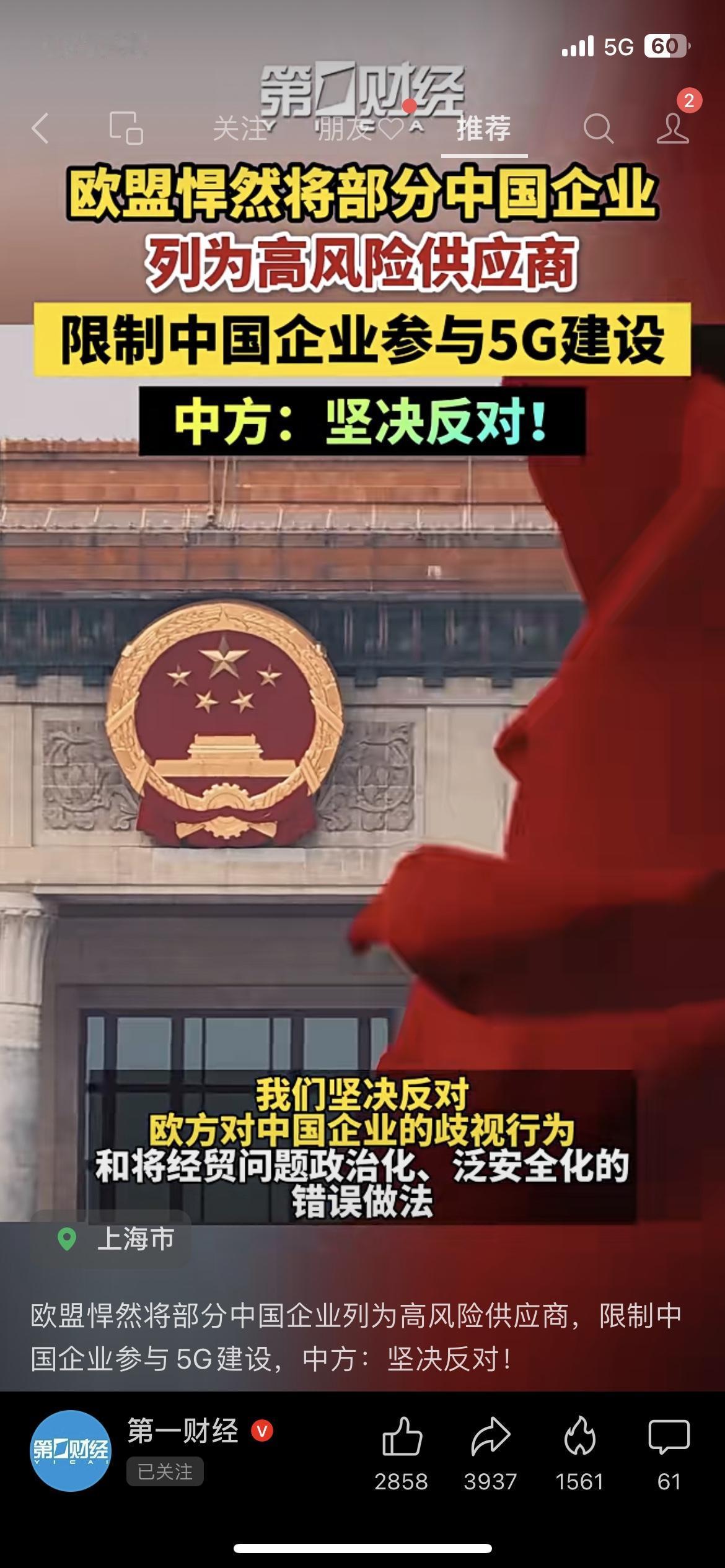 💥欧盟突然卡脖子! 将部分中国企业列为高风险供应商,限制参与5G建设,中方已明确表示坚决反对。咱普通人都懂,核心技术攥在自己手里,才是最硬的底气! 你觉得这波是政治操弄还是真有安全顾虑? 欧盟5G限制 中欧关系
