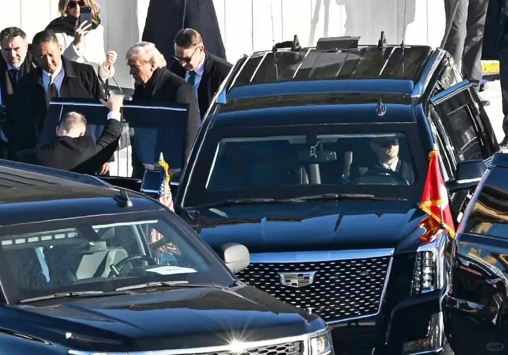 特殊车辆 川建国换新车了,SUV的总统车从Suburban换成了Escalade,玻璃面积小的都快看不见路了,还好这车旁边都有护卫,不用挤着开。