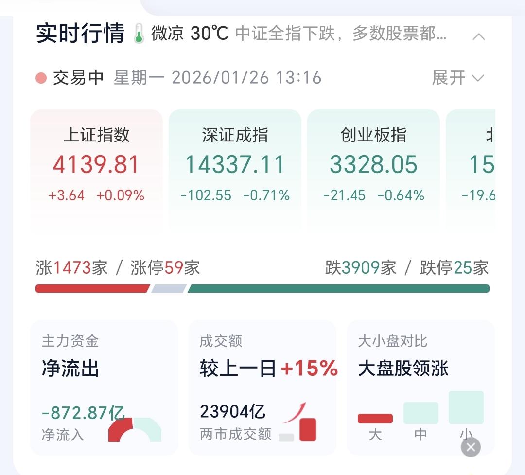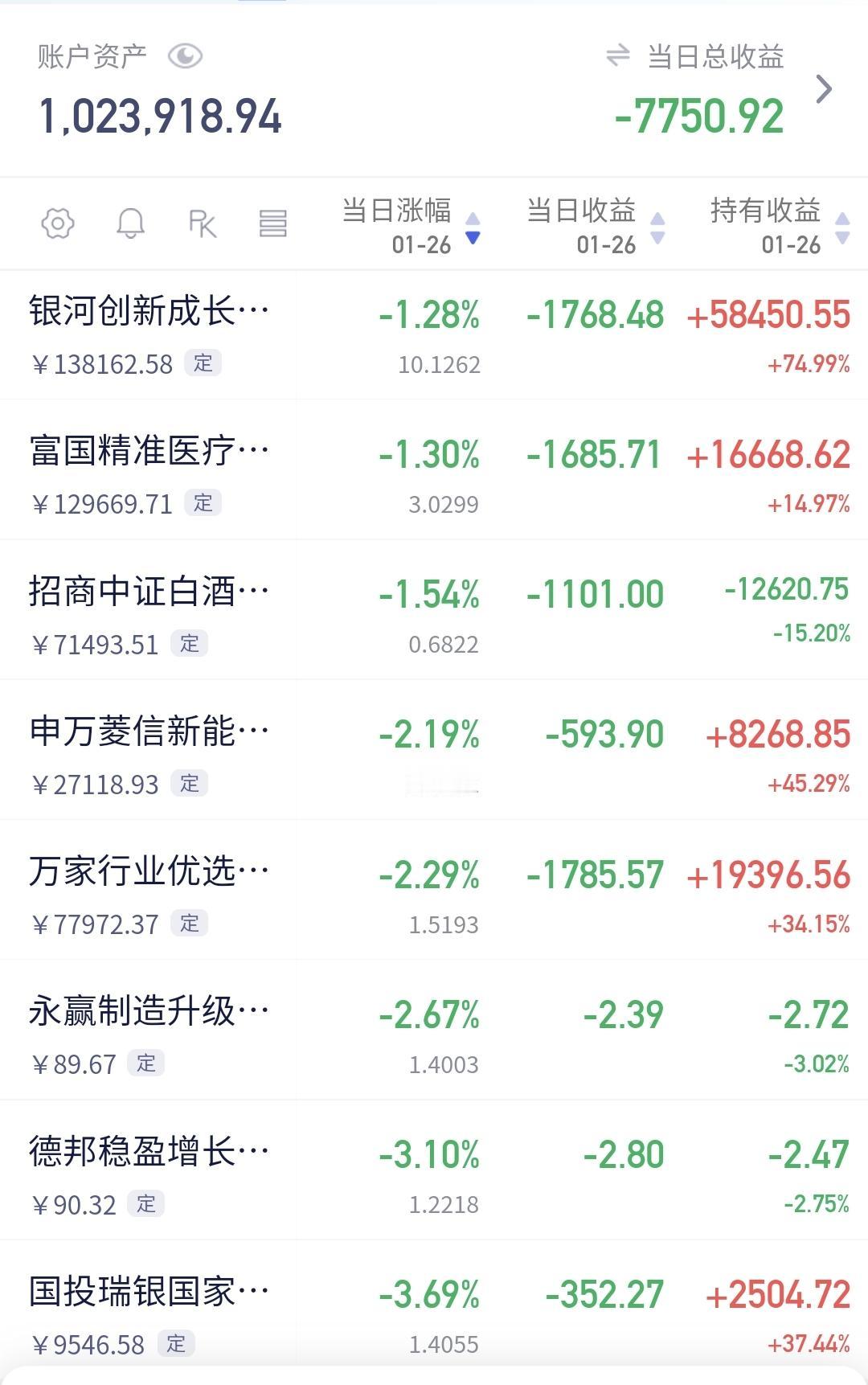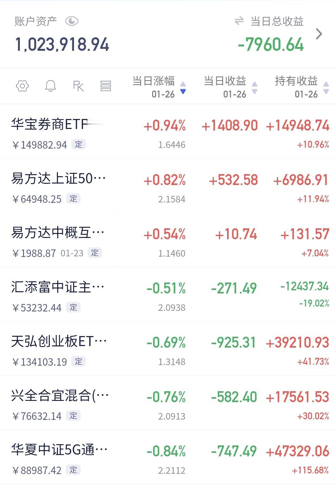 基金:春节之前市场指数会不会大幅度拉升 下午开盘以后,指数小幅度震荡,震荡的幅度很小,创业板指下跌了0.66%,盘中点位3327点,上证指数上涨了0.05%,盘中点位4138点。 整个股票市场,上涨1473家,下跌3909家,涨停59家,跌停25家,上涨家数少于下跌家数。 持有的基金中,盘中估值上涨幅度最大的三个板块是:证券板块,上证50板块,海外互联网板块,估值下跌幅度最大的三个板块是:军工板块,可控核聚变板块,AI应用板块,估值整体亏损了7960元。 整个基金市场,上涨11130家,下跌8314家,上涨幅度超过5%的52家,下跌幅度超过5%的57家。 图9是今天基金的上涨排行榜,图10是今天基金的下跌排行榜,图11是ETF上涨幅度排行榜,图12是今天基金的加仓榜,图13是今天基金的减仓榜。 1:现在黄色线还是在蓝色线下方,两条线之间的敞口还是比较大,这样的情况之下,下午大幅度上涨的可能性不大。 2:两市累计成交23904亿,相比于上周五同期放量了15%,这样的放量幅度还是比较大,虽然没有达到20%以上。 3:看下面的截图14,这是创业板指日K线图,前段时间下跌跌破了上涨通道的下轨线,现在是在下轨线下方震荡中,创业板指日线级别上涨趋势有可能被改变,但这个日线级别的上涨趋势,是短线范围内的上涨趋势,长线持有的人,不可以以这个短期的上涨通道作为观察对象。 看下面的截图15,这是创业板指周K线图,今天的下跌并没有改变周线级别的上涨趋势,现在的位置还是处于上涨通道中,长线持有的人,把周线级别上涨通道的下轨线作为持有条件,只有跌破了上涨通道的下轨线,才可以考虑要不要止盈出来观望。 玩基金的人,你要知道自己有哪几个板块,你是长线持有还是短线持有,长线持有,有长线持有的标准,短线持有,有短线持有的标准,长线持有的人,就不要看短期指标,更不能把短线指标作为持有条件。 4:看下面的截图16,这是券商板块日K线图,券商板块今天是上涨的,但今天的上涨,并没有能够突破下跌通道的上轨线,并没有能够改变券商板块日线级别的下跌趋势,从日线级别看,现在还不建议考虑进场。 看下面的截图16,这是券商板块周K线图,现在的位置处于这个上涨通道内,距离上涨通道的下轨线很近,从周线级别的角度看,现在是一个可以考虑的进场点。 券商板块日线级别处于下跌趋势中,短线的人不建议考虑进场,周线级别处于上涨趋势中,距离上涨通道的下轨线很近,长线的人可以考虑要不要进场,这就是长线持有者和短线持有者操作策略的不一样。 5:看下面的截图18,这是科创50板块周K线图,现在的位置处于这个上涨通道中,今天的下跌并没有跌破上涨通道的下轨,并没有改变科创50板块的上涨趋势,持有的人可以继续持有,由于现在的位置距离上涨通道的上轨线更近一些,这里也不建议考虑进场。 很多的高位板块今天下跌,但并没有确定已经反转向下,这个时候贸然进场和离场都是不对的,我们需要继续观察,对于大盘,近期大涨大跌的可能性都不大,也就是小幅度的反复震荡,春节之前还有十几个交易日,这个时候资金的态度都是相对谨慎的,不要指望这个时候指数会有大幅度的拉升,保持谨慎的态度是没有错的。 今天究竟应该怎么办?我会在评论区留言。 大家帮忙评论,点赞,转发和分享,谢谢大家的支持。