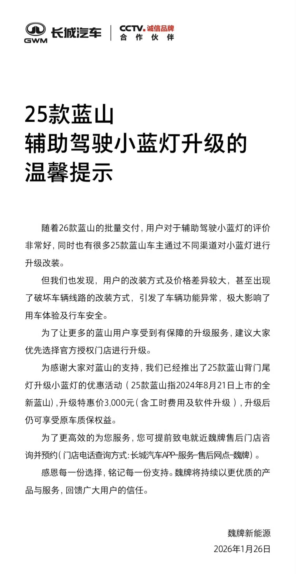 魏牌给25款蓝山升级智驾小蓝灯,3000块钱,升吗?旭子的蓝山 北京