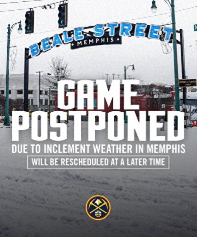 NBA官方宣布,今天的两场比赛因天气原因将推迟进行。 这两场比赛分别是灰熊队主场对阵掘金队的比赛,以及雄鹿队主场对阵独行侠队的比赛。据报道,独行侠队因为天气原因无法启航飞往密尔沃基,这也不得不导致比赛延期。 在地理上,孟菲斯与密尔沃基相近,孟菲斯地区从当地时间周六清晨开始出现雨夹雪、冻雨和雨夹雪的天气,并持续到周日上午。孟菲斯南部和东部地区,冻雨积聚在电线和树木上,导致大范围停电和道路阻塞。由于雨雪天气和严寒气温导致路面再次结冰,当局建议民众待在家中。