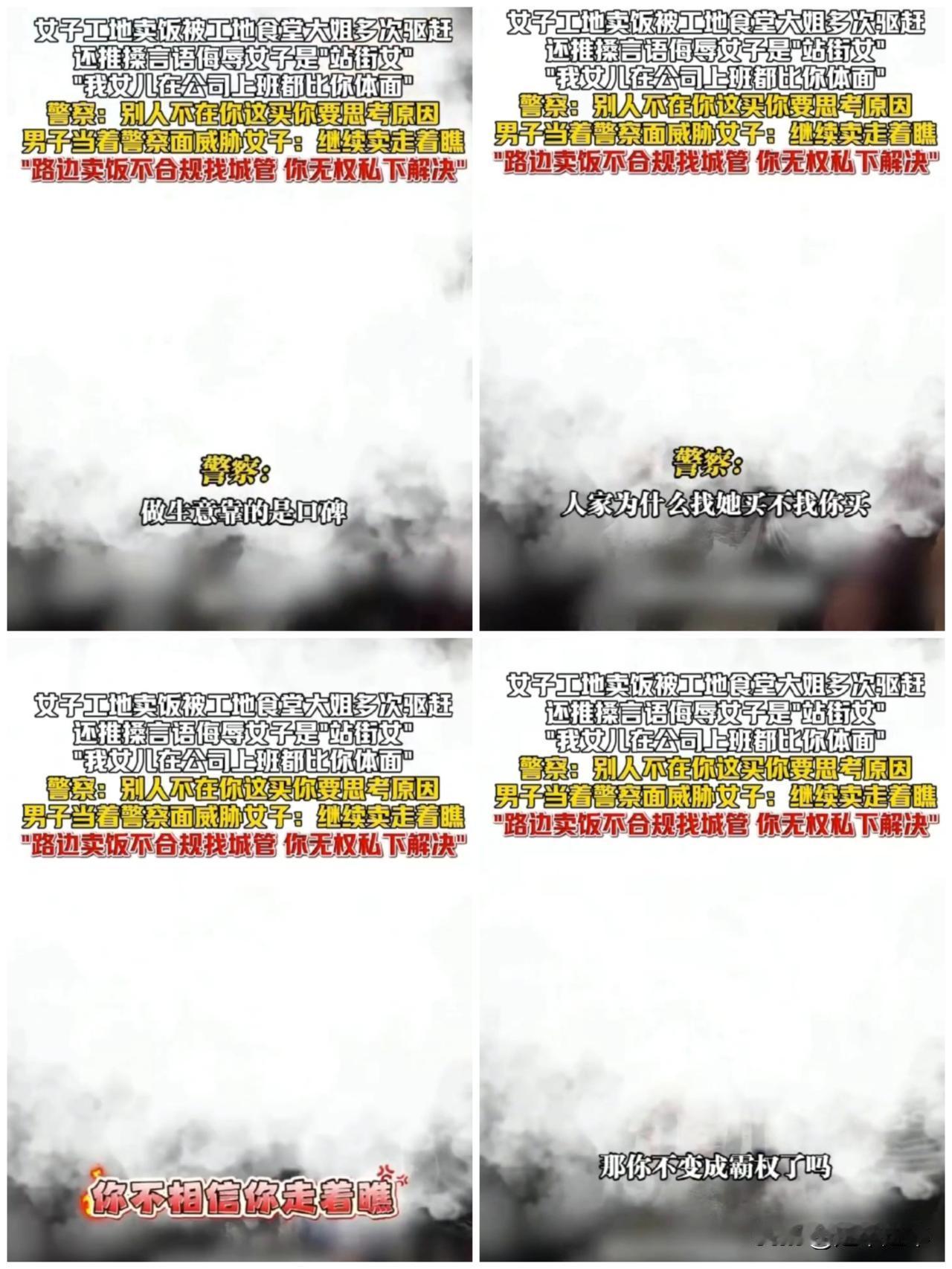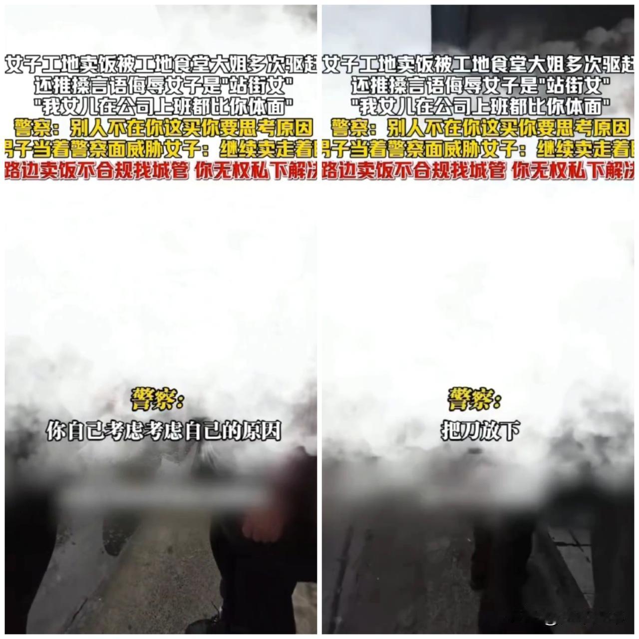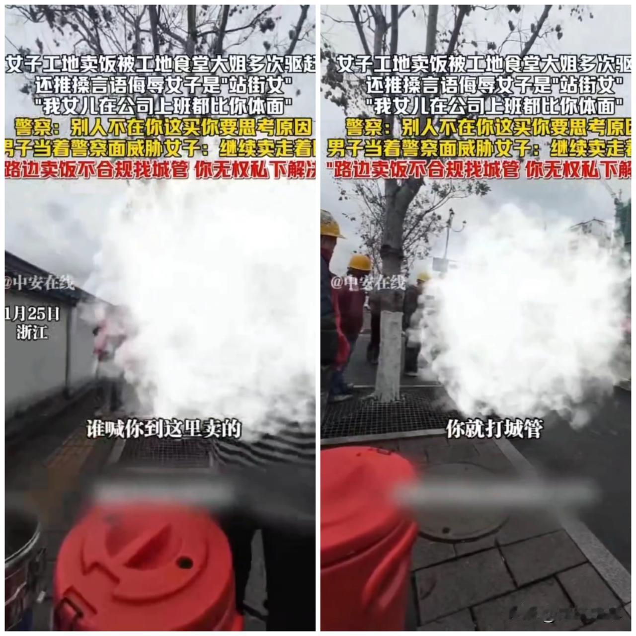 浙江工地食堂方辱骂在外卖盒饭的人是“站街女”,警方出面维权太解气。 26年1月25日,浙江一名在工地附近卖饭的女子遭工地食堂工作人员多次驱赶。食堂方一名女性工作人员不仅推搡驱赶该女子,更以“站街女”“我女儿在公司上班都比你体面”等言论进行人格侮辱,并嘲讽其职业低贱。 可以理解工地食堂因为是承包经营的,工人就餐流量少会影响他们的收入。是何原因造成的问题,赶来解决纠纷的警察叔叔发出来了灵魂拷问。市场行为需反思自身问题民警指出工人选择购买路边摊饭食是因“口味、价格、口碑”更优,食堂生意差应自我检讨而非驱逐竞争者。若认为路边摊违规应联系城管处理,食堂方无权私力驱逐。尽管民警介入,涉事食堂一男子仍公然威胁卖饭女子“继续卖走着瞧”,暴露经营食堂者的法律意识淡泊。 在现场围观群众认同民警“市场自由竞争”的逻辑,强调食堂若想赢得客户需提升服务质量,而非通过辱骂、威胁等恶性手段打压对手。而卖盒饭女子一句回应“杭州天气冷,人心是热的”更是获得大家的共情,凸显争执双方的情商高低。 部分工地食堂依托场地垄断地位排斥外部竞争者,却忽视工人对实惠餐食的需求。民警虽指出食堂方无权驱赶摊贩,但对“站街女”等侮辱性言论未当场定性处罚。最近多起辱骂事件(薅羊毛的媒体记者)因视频曝光推动当事人道歉、辞职甚至法律追责,体现社会对言语暴力的零容忍。 竞争应该回归市场本质,食堂需以优化服务而非打压他人赢得生存。言语暴力治理需法律细化,对职场、公共场所的侮辱性言论加强处罚力度。盒饭摊贩