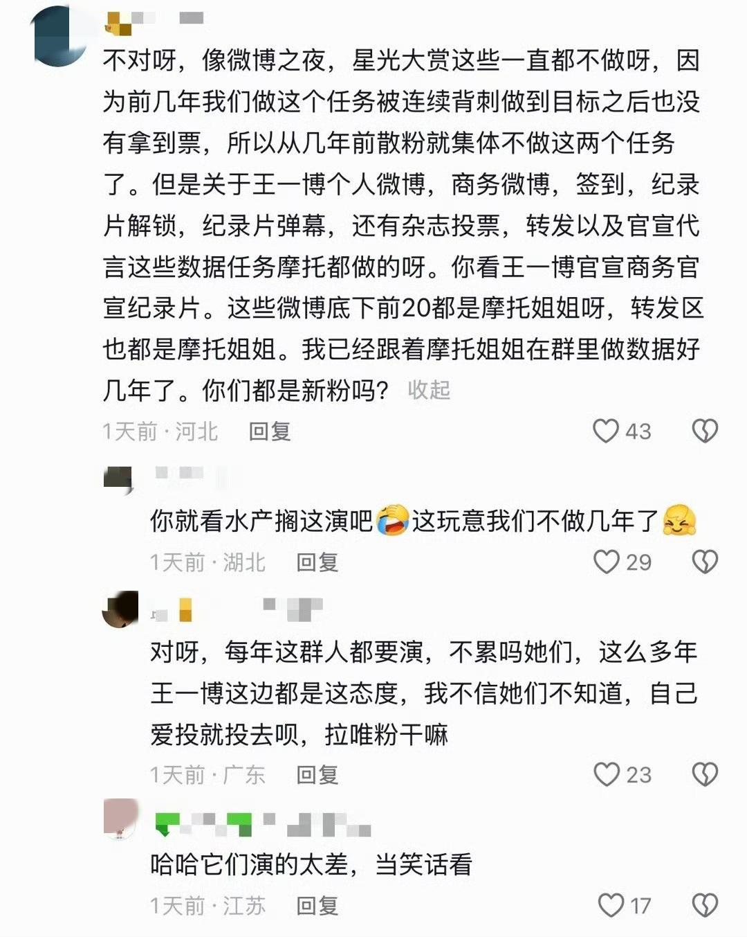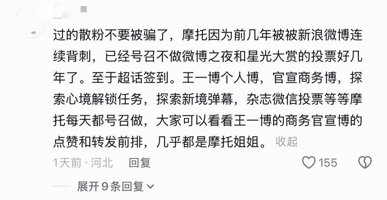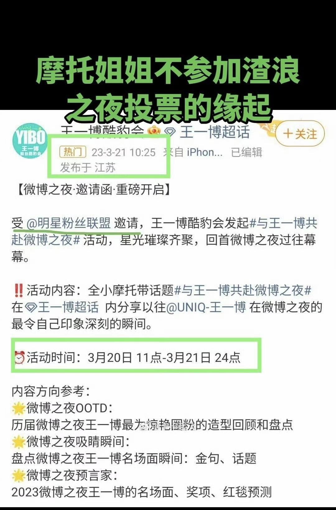 几天了,因为某家和别家有冲突了,所以一直在各种手段pua、骗摩托姐姐下场投某平台堂会的票。 那就再重重重重复一句话:王一博家粉丝摩托姐姐早就不参与不组织不号召某平台任何性质任何形式的投票活动! 既然有人拿投票说事儿,那就再来复习一遍王一博家为什么不投某浪堂会。从19年断层第一被送20个黑热搜然后放弃投票,到23年某浪数次恳求摩托姐姐参与,结果毫不意外再次被赤裸裸背刺。从此,摩托家再也不参与不组织不号召该平台任何投票。 这是只要稍微考古过的所有摩托姐姐几乎都知道的事情,包括绝大部分粉圈都知道的事。所以,如此明白清楚的事实面前,那些到处鬼哭狼嚎pua摩托姐姐甚至欺骗一些新粉摩托姐姐去投票的群体,都是什么目的什么性质,大家不言而喻了吧? 王一博的位置,在金鸡,在华表,在金鹰,在全球文明对话部长级会议、在联合国保护冰川的新闻里……一个破堂会,谁爱争谁争去吧,别带着王一博了,编出花儿来,你摩托姐姐也不会去投。 ps:[泣不成声],那就重发