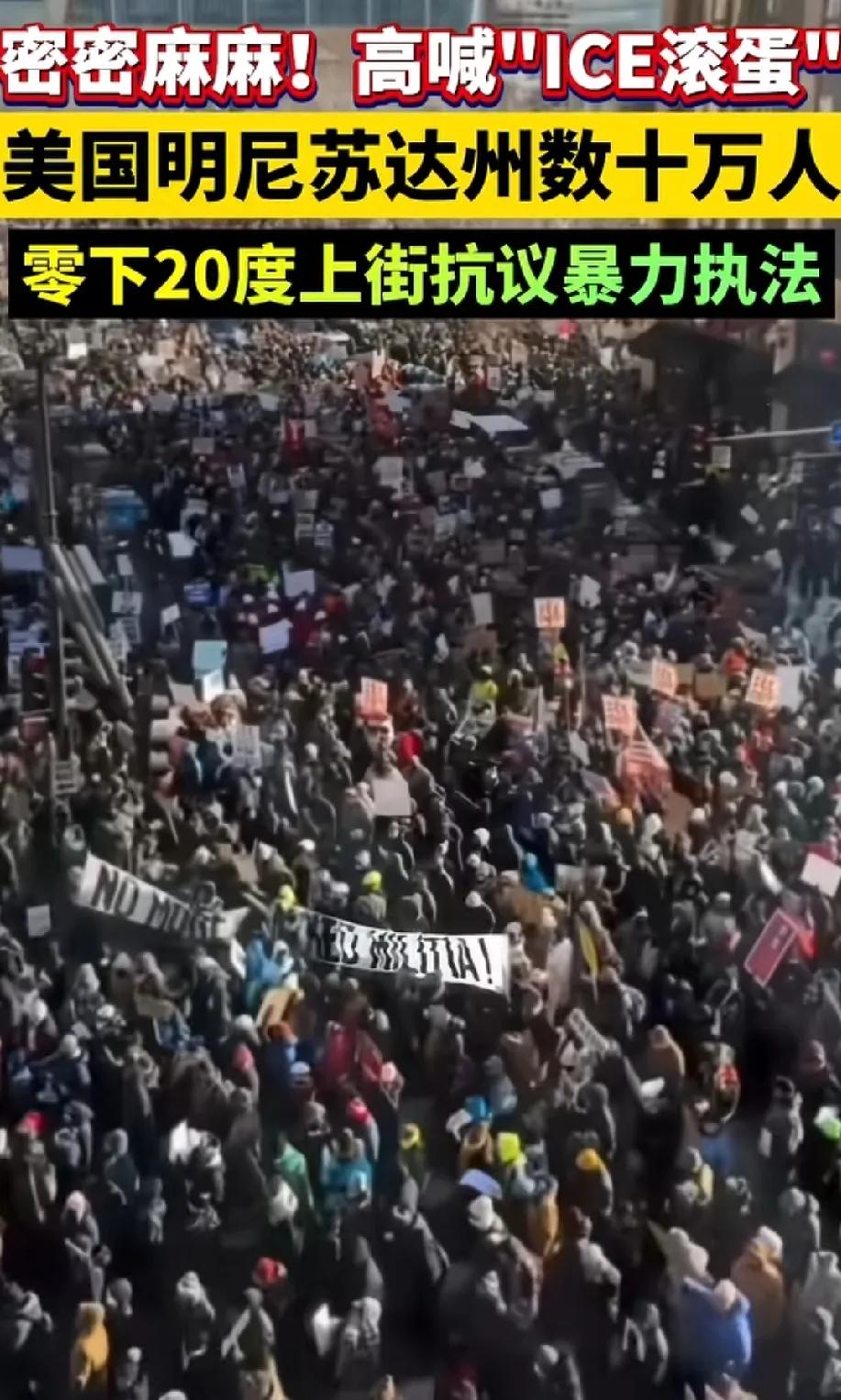 美明尼苏达州十万民众集会怒喊ICE滚蛋,却无一人高喊王侯将相,宁有种乎! 看得出来,老美的血性也仅限于此了! 真是很怀疑这个国家的人,枪支私有率全球第一,几乎人手一把枪,却被ICE接连枪杀了五名美国公民,而且还是近乎于单方面屠杀的程度,就这样都没有激发起他们反抗老美政权的怒火! 不得不说,基督教新教这些东西在美国还真是管用! 我们初中政治课上就已经很明确的说了,宗教是为封建王朝服务的,是王朝政权维持其统治的手段! 现在才看明白。美国人吃亏就吃亏他建国时间太短,没有啥历史,他们的老百姓也没啥可借鉴的东西! 南北战争,表面上是资本主义战胜农奴制,实则是现阶段美国依旧还是一个农奴制的国家,只不过包装成了国家而已! 美国用宗教几乎洗脑了所有的美国人,让他们生不出反抗的念头! 这场面要是搁在中国古代,分分钟起义成功!美国游街抗议