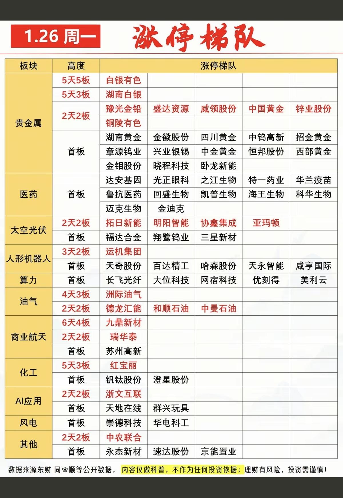 1.26周一 涨停板股票: 题材+高度! 涨停板70家,跌停30家 涨跌比1604:3771 贵金属 14股涨停 病毒防治 7股涨停 有色金属 7股涨停 机器人 5股涨停 算力 5股涨停