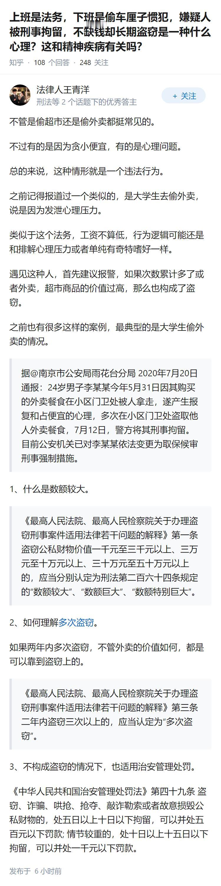 上班是法务,下班是偷车厘子惯犯,嫌疑人被刑事拘留,不缺钱却长期盗窃是一种什么心理?这和精神疾病有关吗?